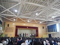 卒業式まで学校に登校する日は10日を切りました。今日は、体育館でお世話になった六年生へ感謝とエールを送る会を開きました。1年生から5年生まで言葉と歌や笛の演奏などで気持ちを伝えました。