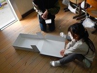 『あきみつけ』で集めたどんぐりや松ぼっくりなどを使い、おもちゃや楽器を作っていました。作業の途中で何度も試しながら、楽しみながら活動していました。