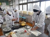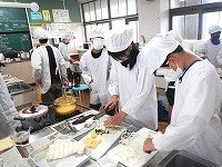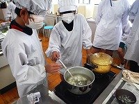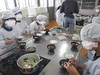 5年生は来週、林間学習に行きます。そこでの活動で、夕飯にカレーを作ります。その練習もかねて家庭科で「ごはんとみそ汁」をつくりました。みそ汁はにぼしでだしを取ります。だしの入っているみそ汁と入っていないみそ汁と味の違いも確かめました。「だしと具が入っているお味噌汁がおいしい。」と感想を話してくれました。手順を確認しながら協力して進めていました。特にご飯がおいしく炊けていました。来週も成功することを祈ります。