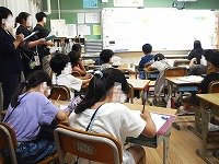 月に1度、AETと外国語活動の授業を行います。今回のテーマはハロウィン。ハロウィンにまつわる言葉を覚え、最後はビンゴをして、英語に親しみました。
