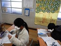 校外学習で集めた松ぼっくりやどんぐりなどを活用し、クリスマスツリーや自分で作りたいものをつくります。今日は校内でもう少し材料集めを行っていました。