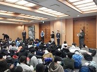 二日目の朝、外を見ると、真っ白。さらに雪も降っており、バスが宿から出られるか心配しましたが、道中の路面は凍結しておらず、問題ないとのことで、予定通り、姫路セントラルパークへ出発しました。