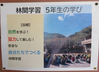 職員室横の掲示板の内容が変わり、5年生の林間学習に関する学びの掲示になっています。🍃