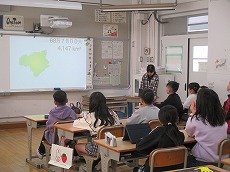 4年2組の子どもたちから、社会科の学習で作成した都道府県紹介のプレゼン