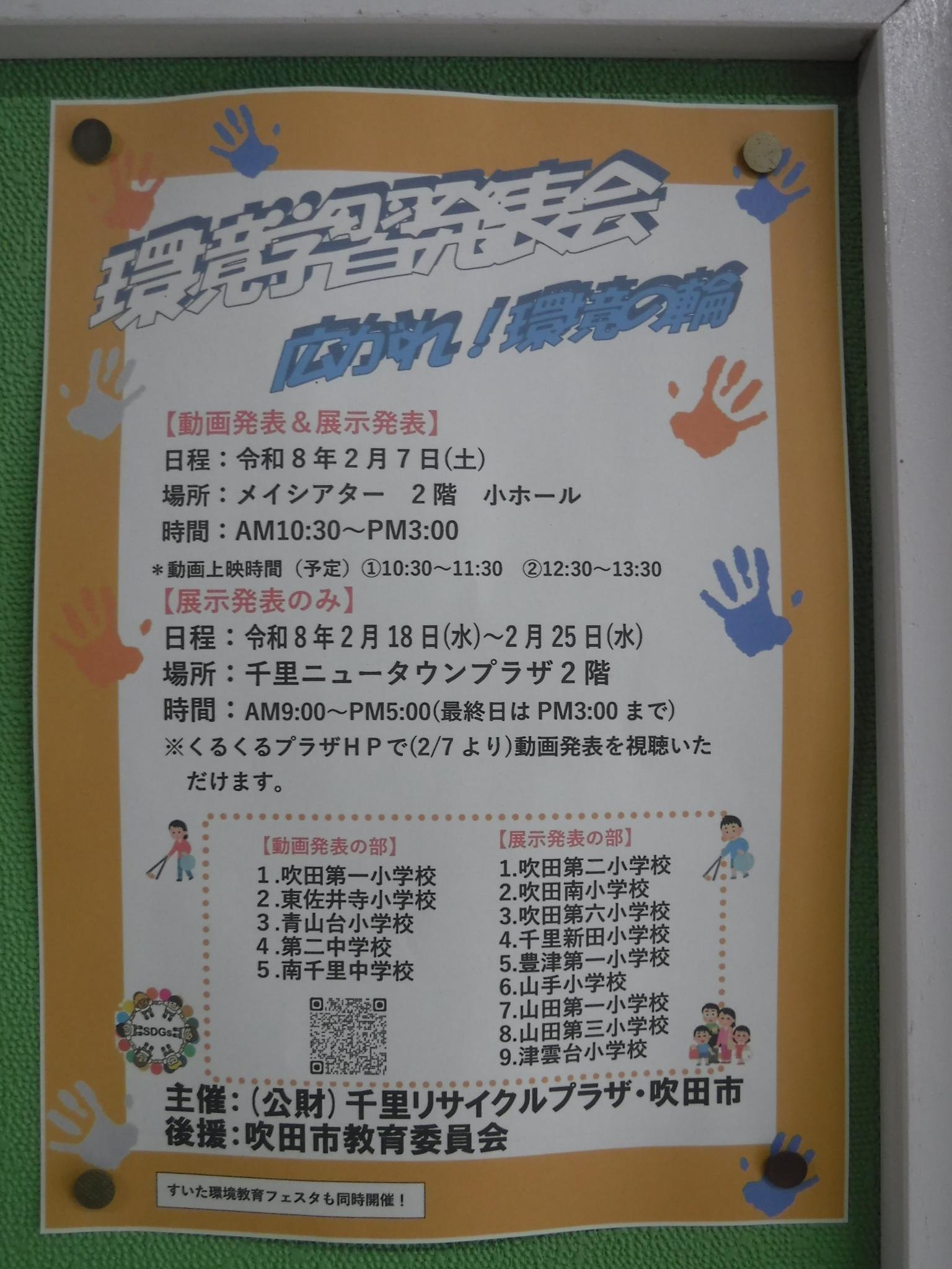 千里リサイクルプラザと吹田市が主催で、教育委員会が後援。