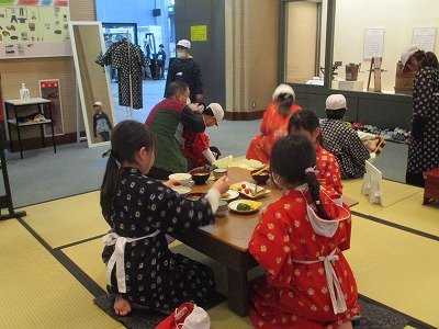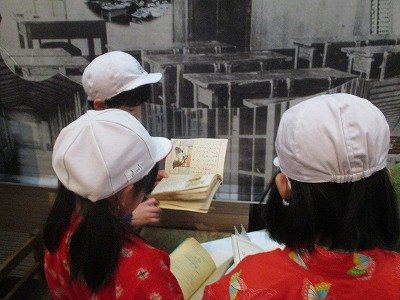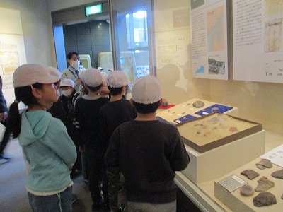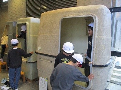 2月17日、3年生は市立博物館へ校外学習に行きました。昔の暮らしについての展示品や体験コーナーがあり、博物館スタッフの方から詳しい説明や、ものの使い方などを教えてもらっていました。実際に着物を着たり、1970年万博の時に展示されたユニットバスに入ったりして、身体ごといろんな学びをしていました。展示品の中には、昔の千里第一小学校校舎で使われていた屋根瓦もあり、つながりも感じることができました。