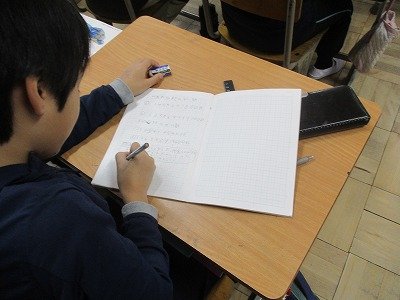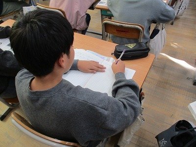 4年生の図工で立体作品を作る前に、下書きをして構想を練っていました。どんな作品になるか、まずイメージ図を作り、それをもとに立体物を制作していきます。今日は、下書きを一生懸命考えていました。