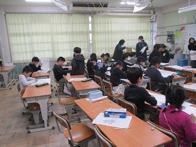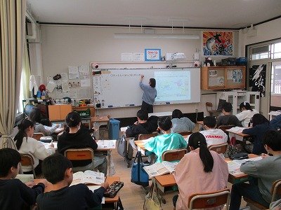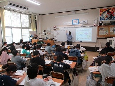 昨日の続きです。写真は、3年生の社会と英語の授業の様子です。隣の先生が来てもしっかり学習しています。