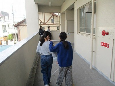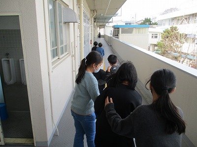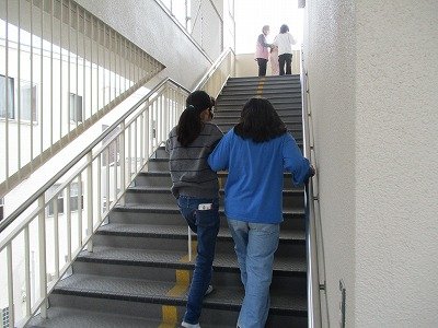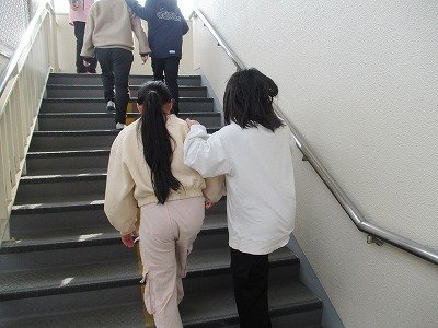 その1からの続きです。白杖体験の様子です。