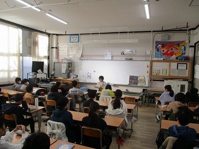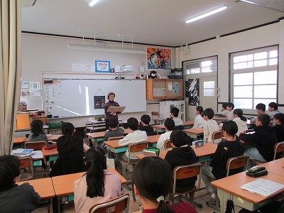 2月17日、今日は5年生に読み伝えの会の方が来て、童話を聞かせてくれました。グリム兄弟作の「ブレーメンの音楽隊」というお話です。有名なお話ですが、今の子ども達は、そういったお話に触れる機会が減っているので、興味深く読み伝えの方の語りを聞いていました。