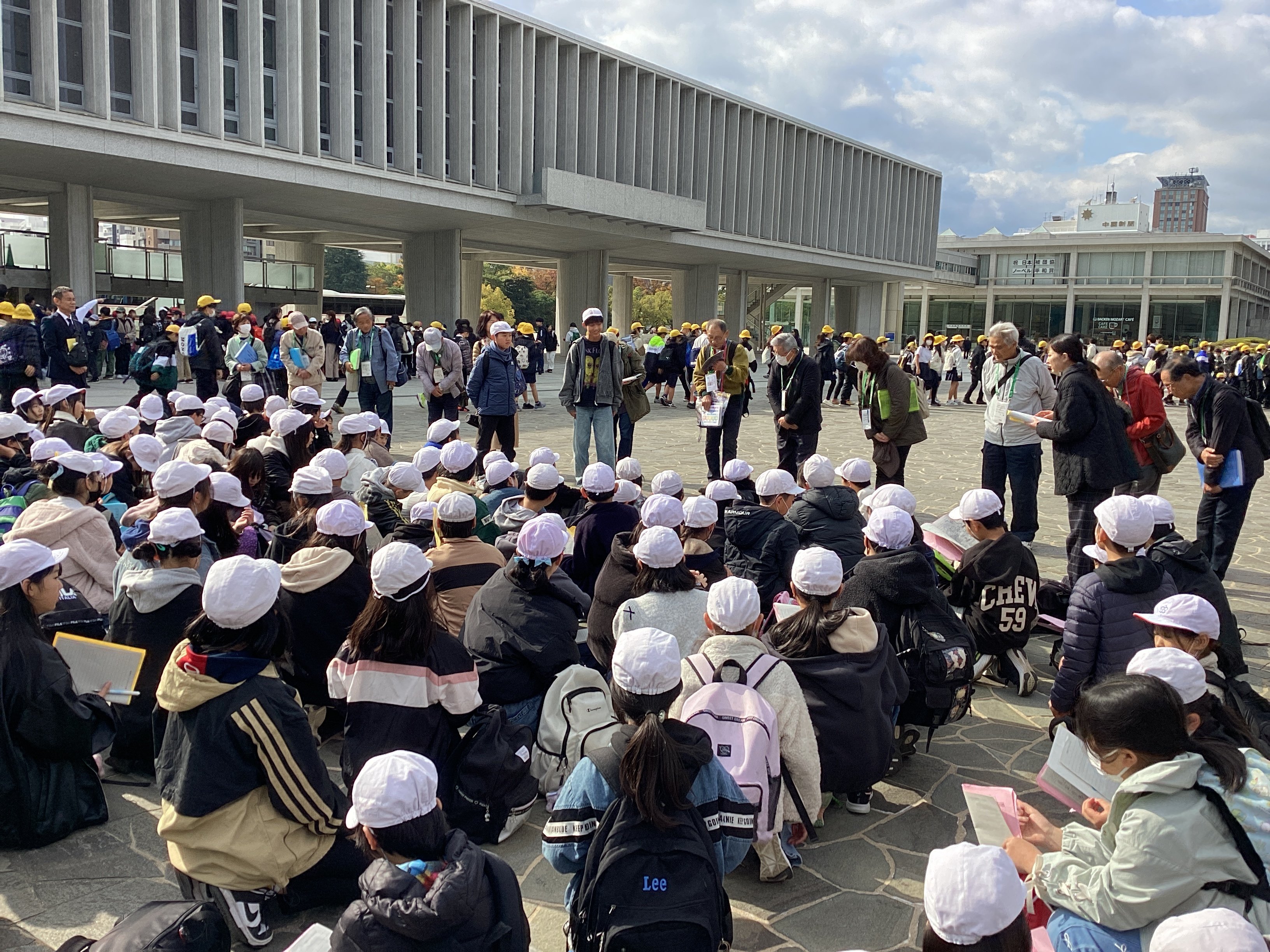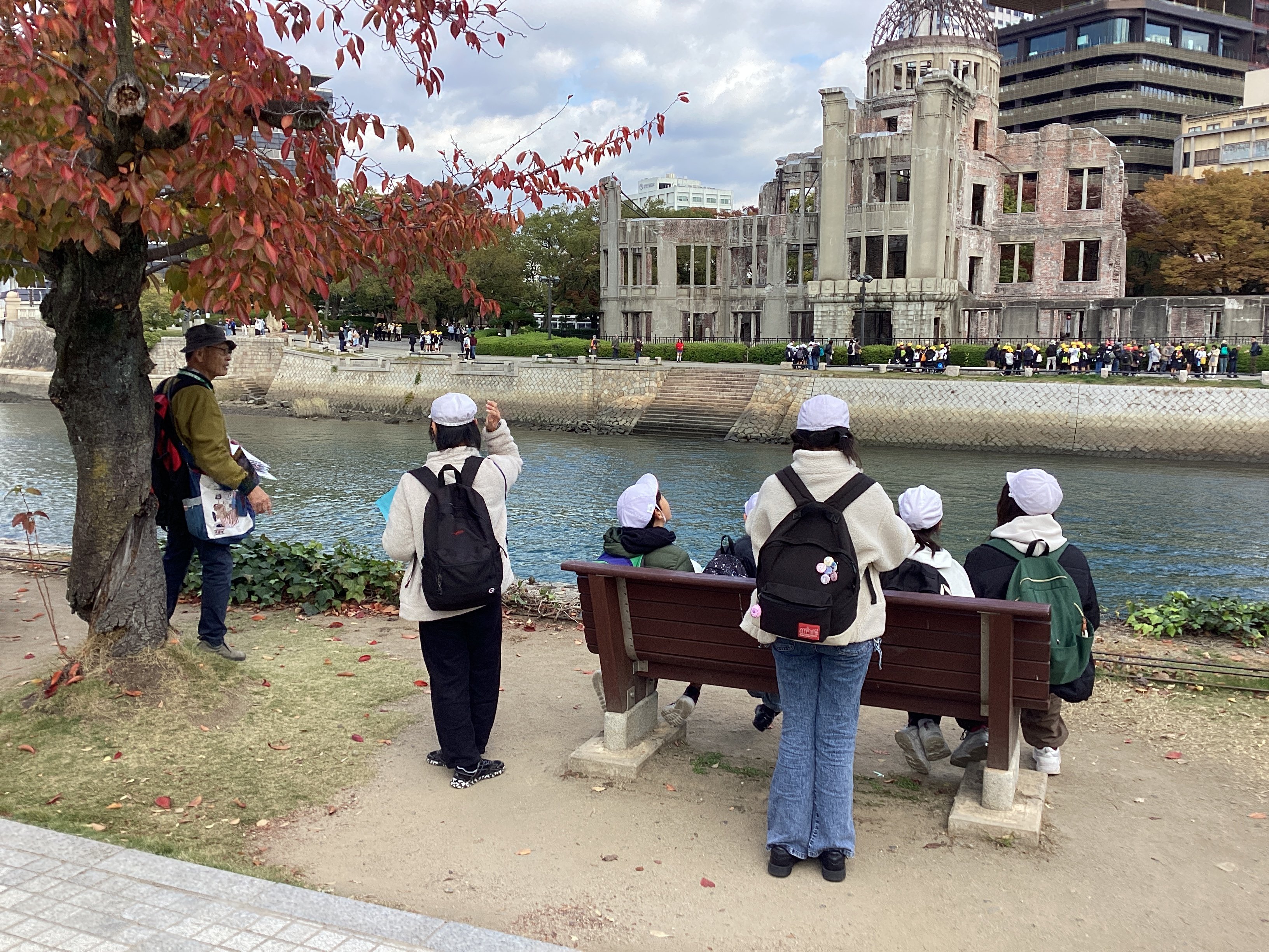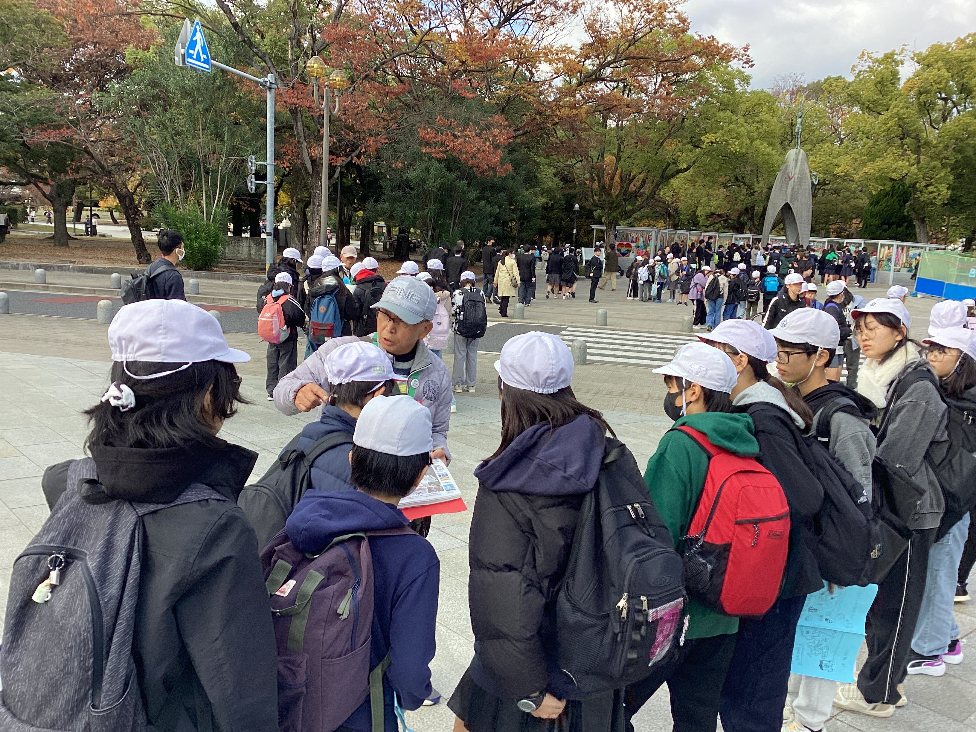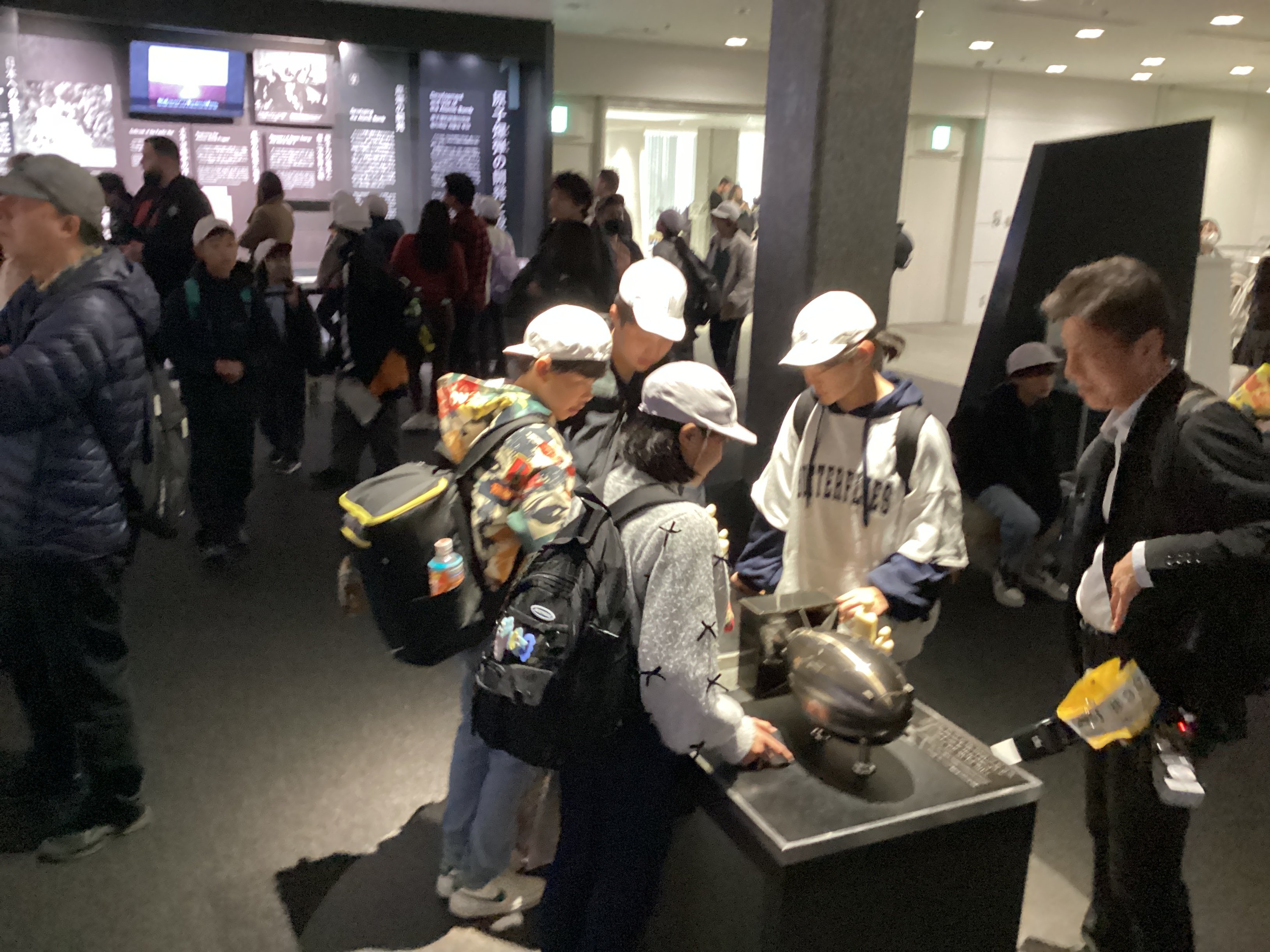 平和学習報告会では、現地に来て話を聞いたり、実物の資料を見たりすることで感じたことをそれぞれの班が発表していました。平和について、戦争についての考え方は様々ありますが、今後も学習を進めていく中でこれから戦争が起きないために自分ができることを考え続けることを期待しています。