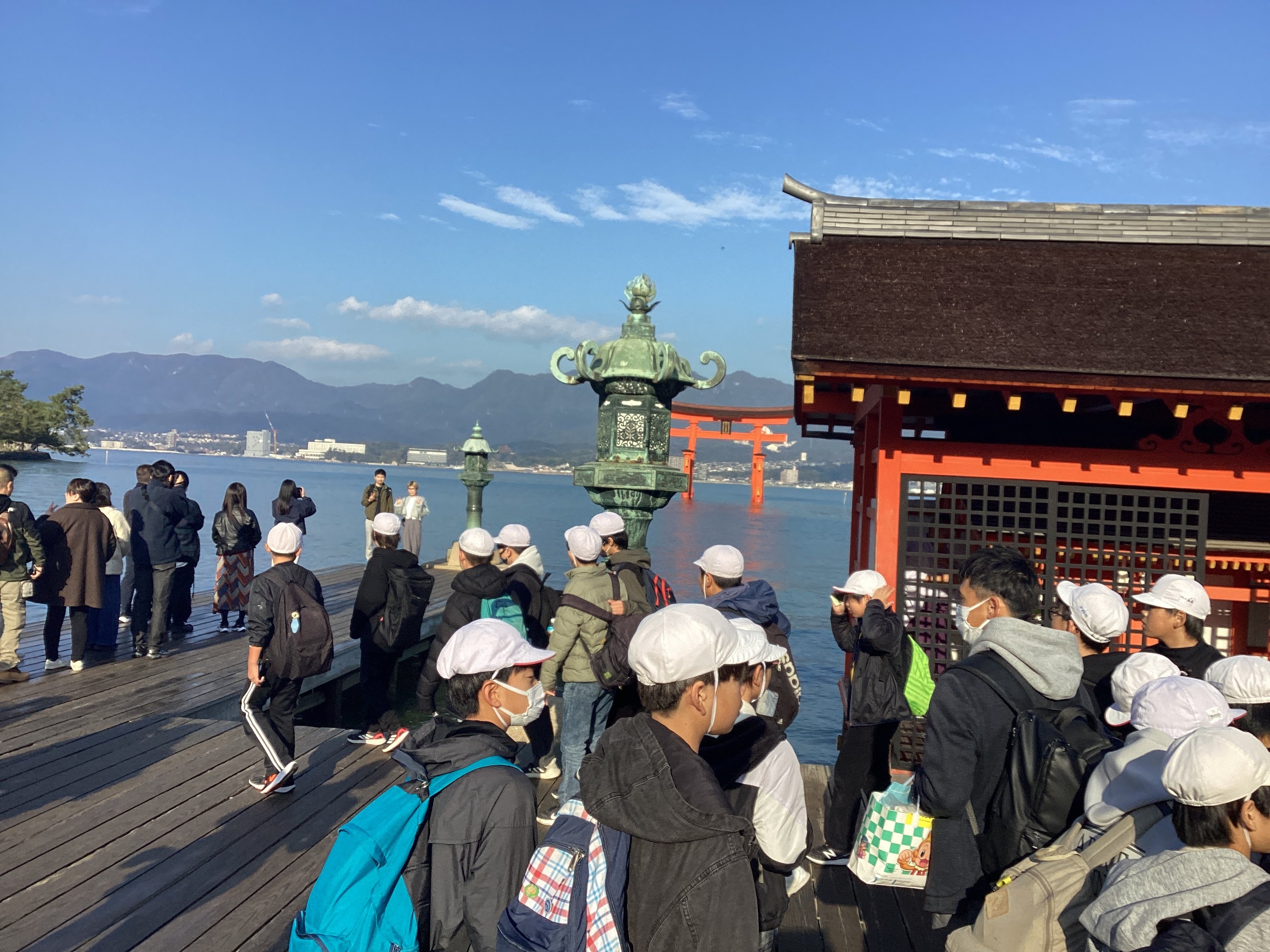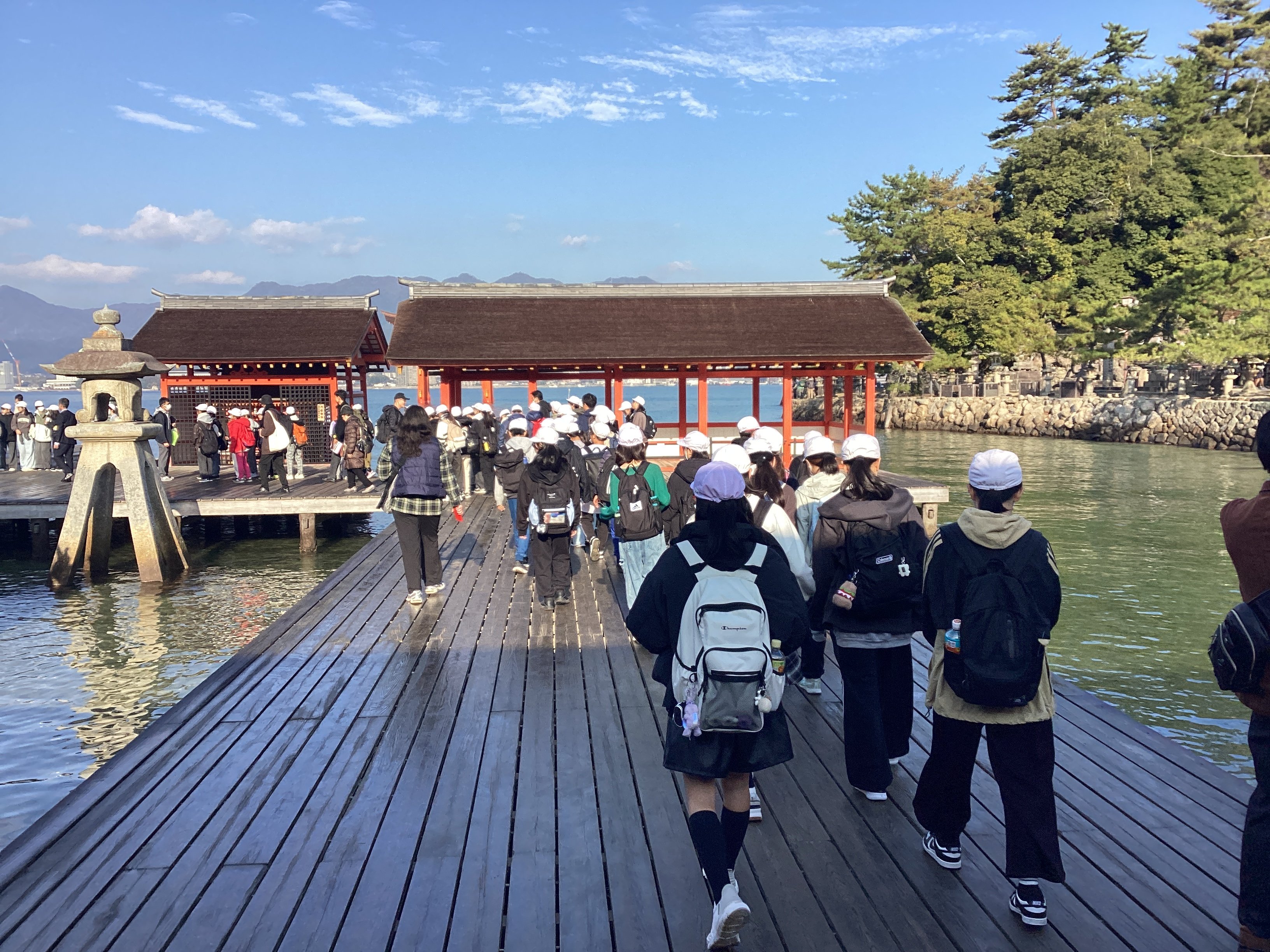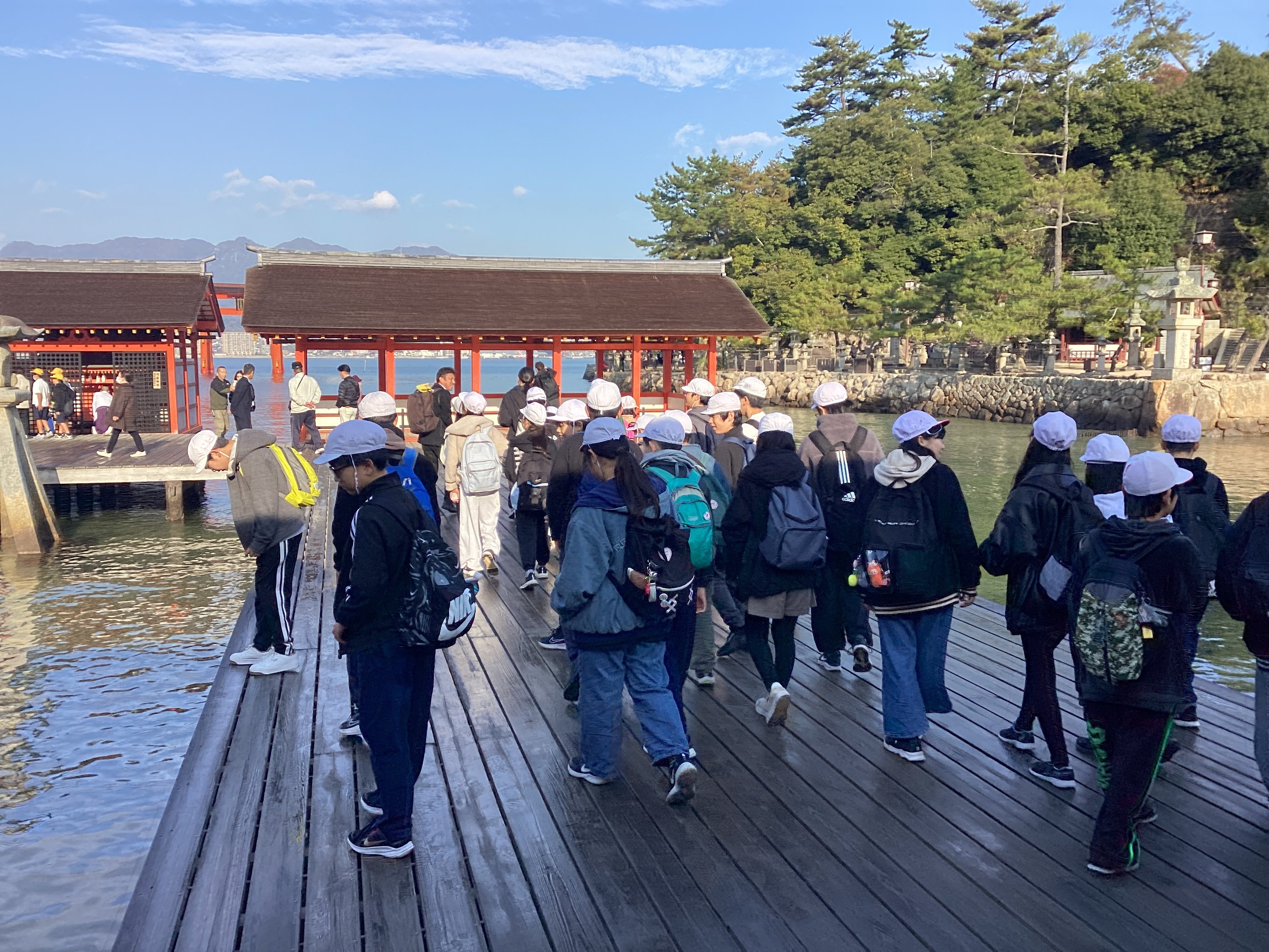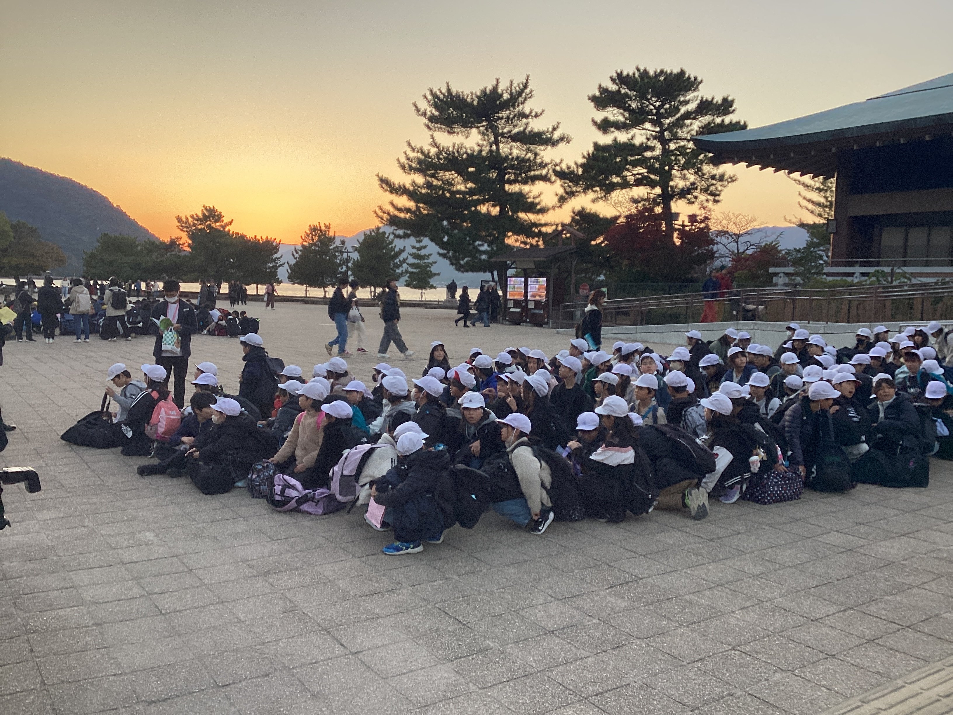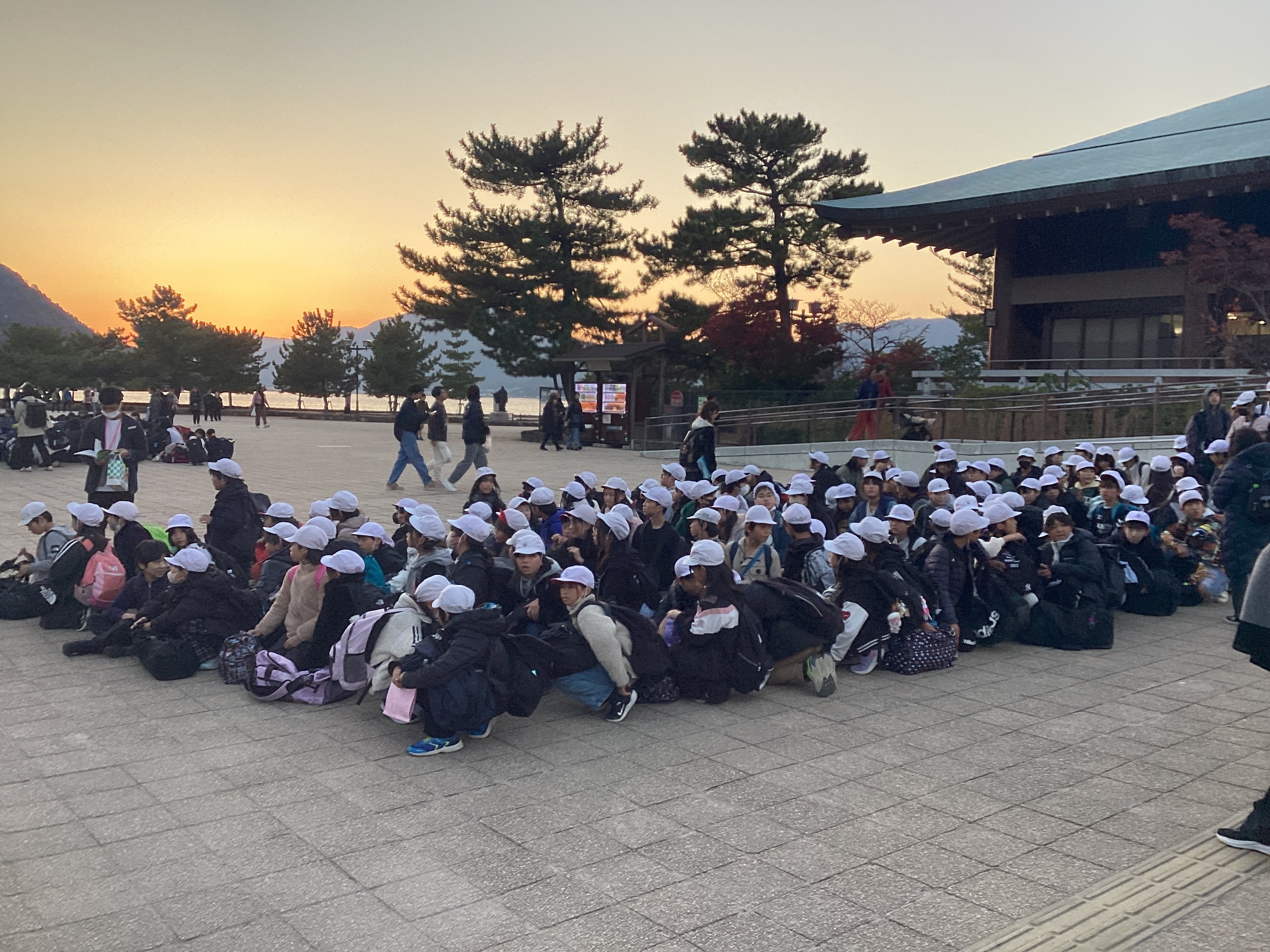 修学旅行2日目の様子です。子ども達は、元気に起床し、朝ごはんもしっかり食べ、その後協力して部屋の片付けをし、宿舎を後にしました。厳島神社、水族館見学を終えた後、買い物タイムを楽しみました。2日目の様子を何通かに分けて写真でお伝えします。