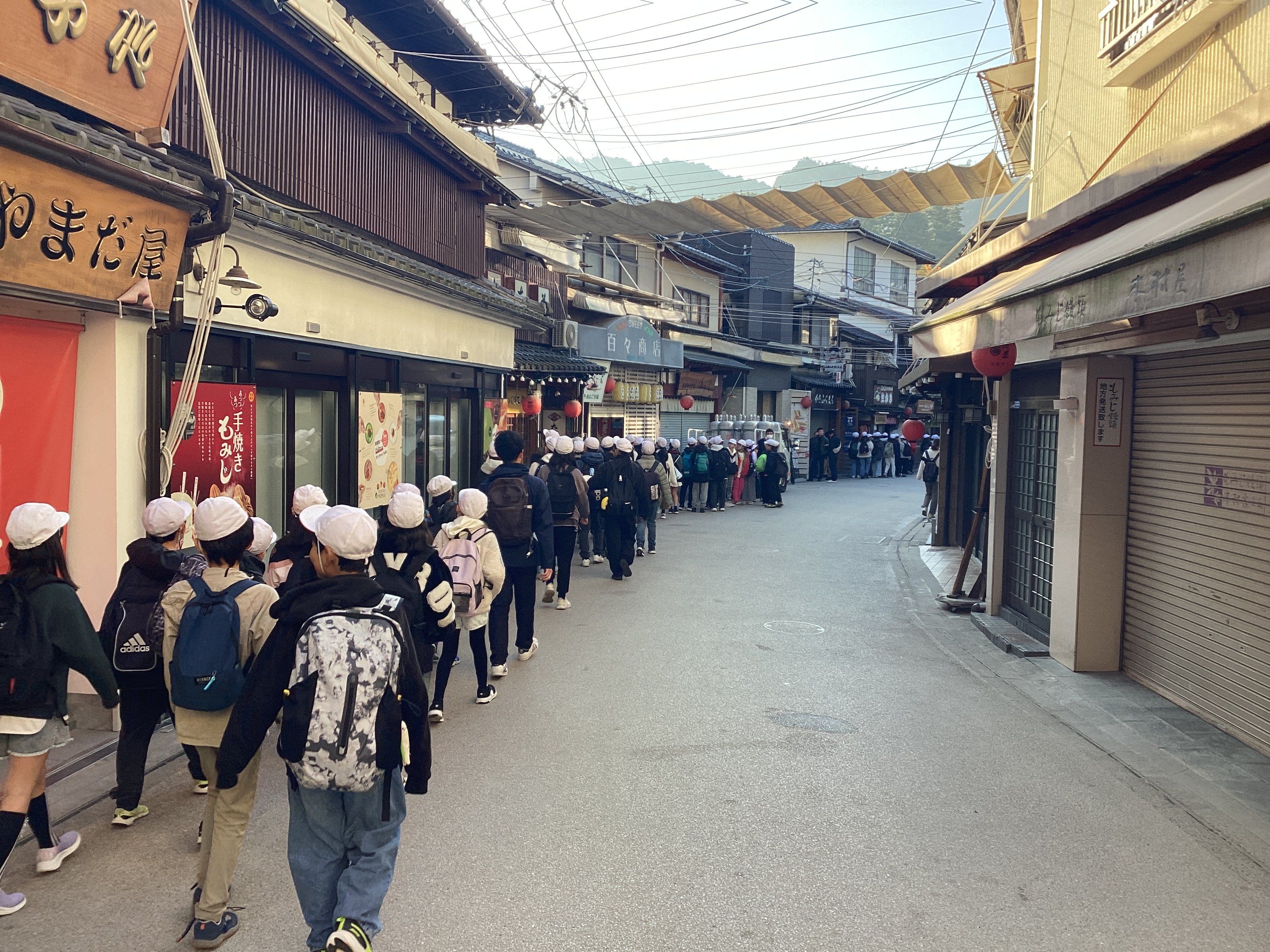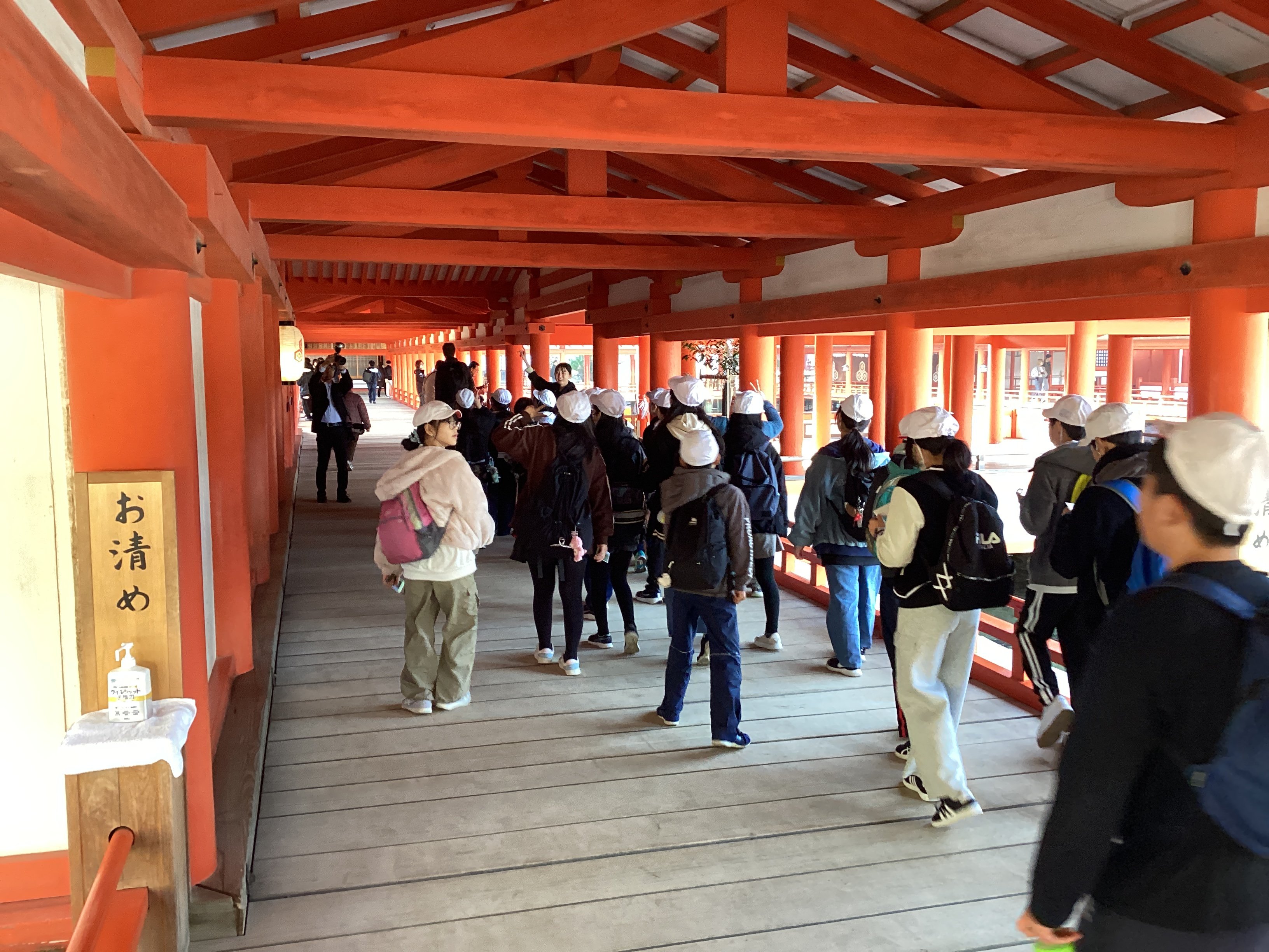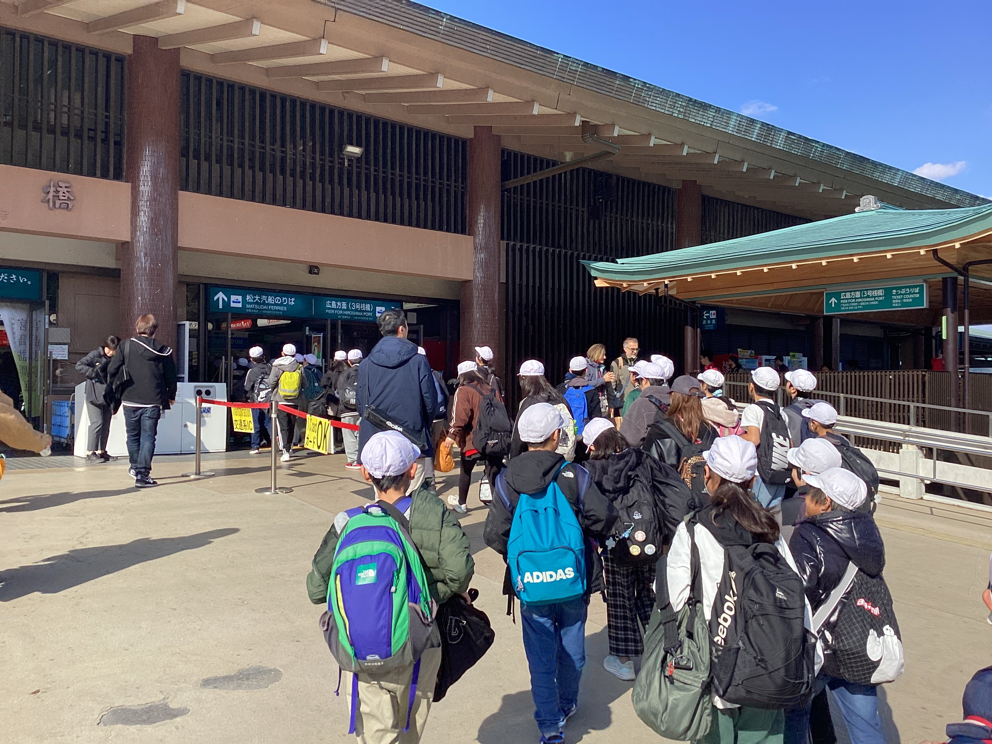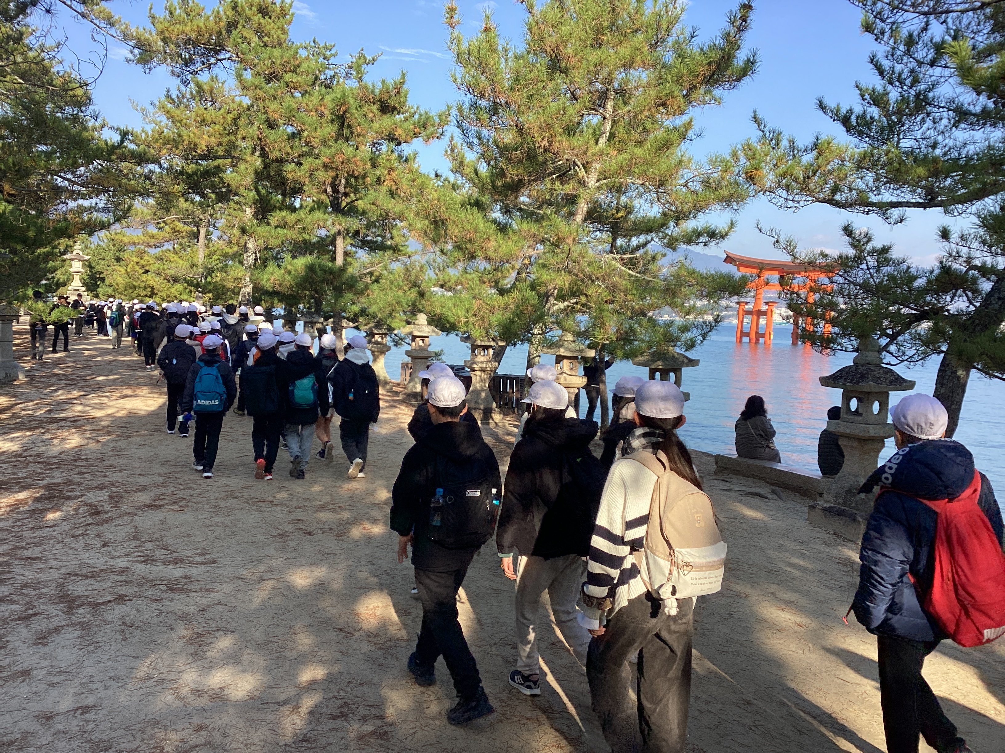 修学旅行2日目の様子です。子ども達は、元気に起床し、朝ごはんもしっかり食べ、その後協力して部屋の片付けをし、宿舎を後にしました。厳島神社、水族館見学を終えた後、買い物タイムを楽しみました。2日目の様子を何通かに分けて写真でお伝えします。