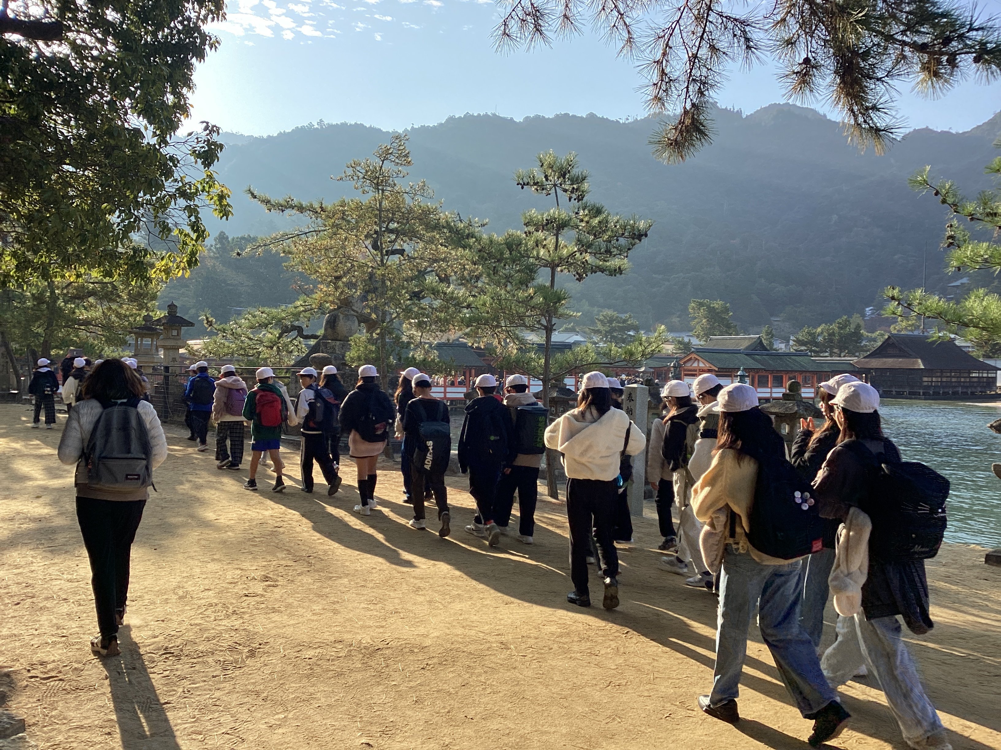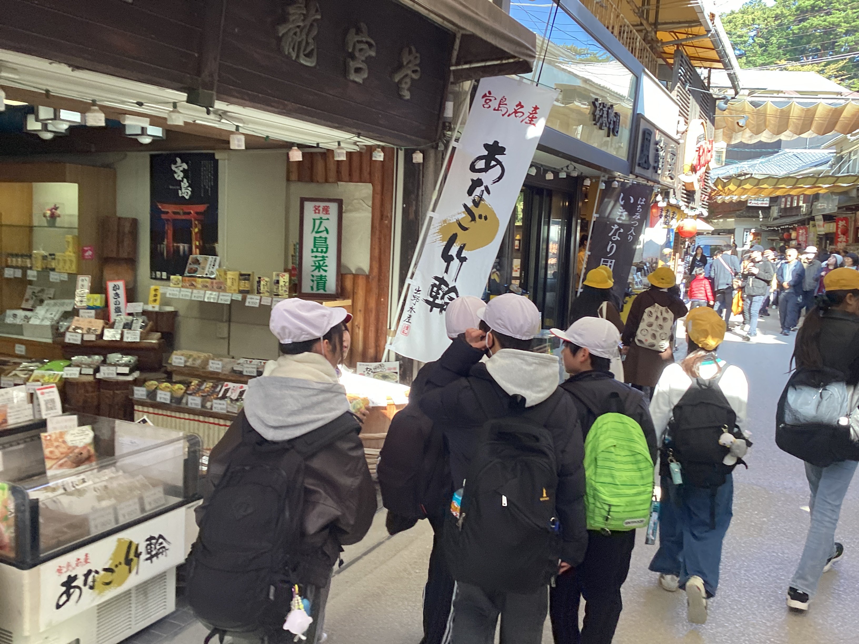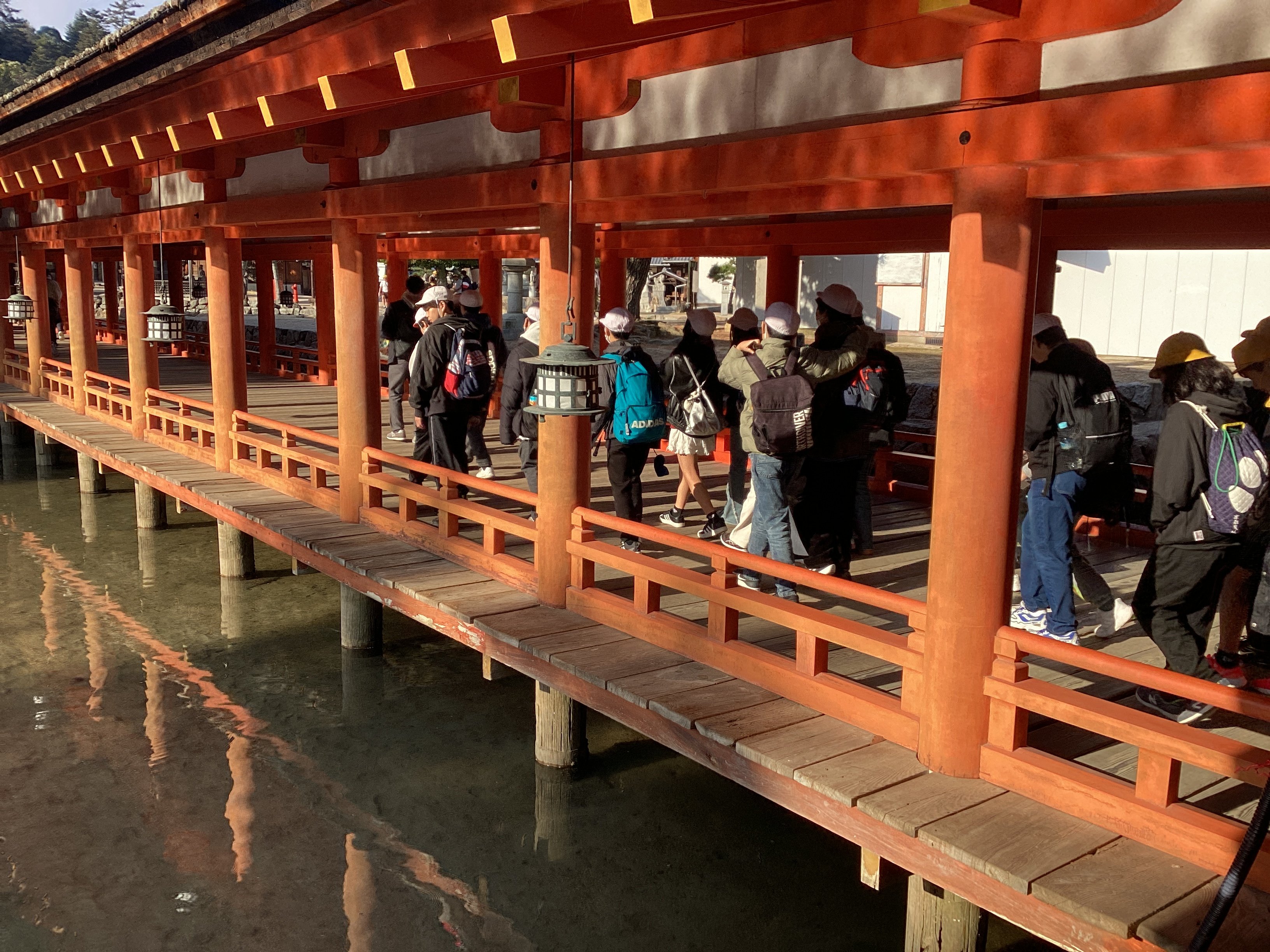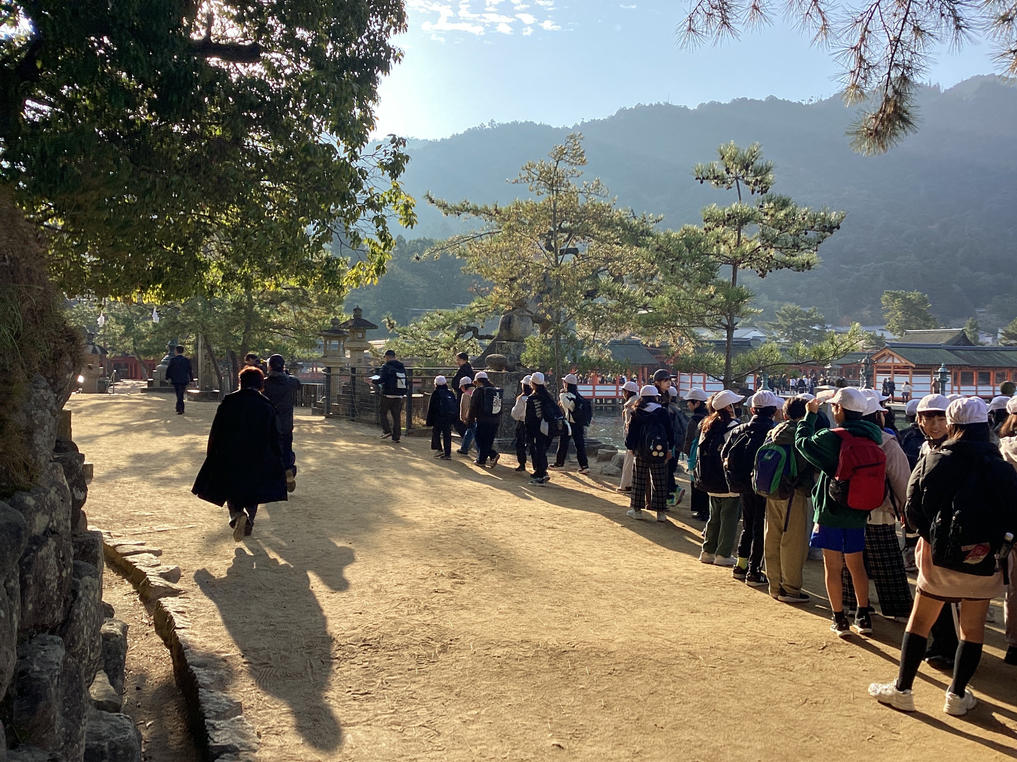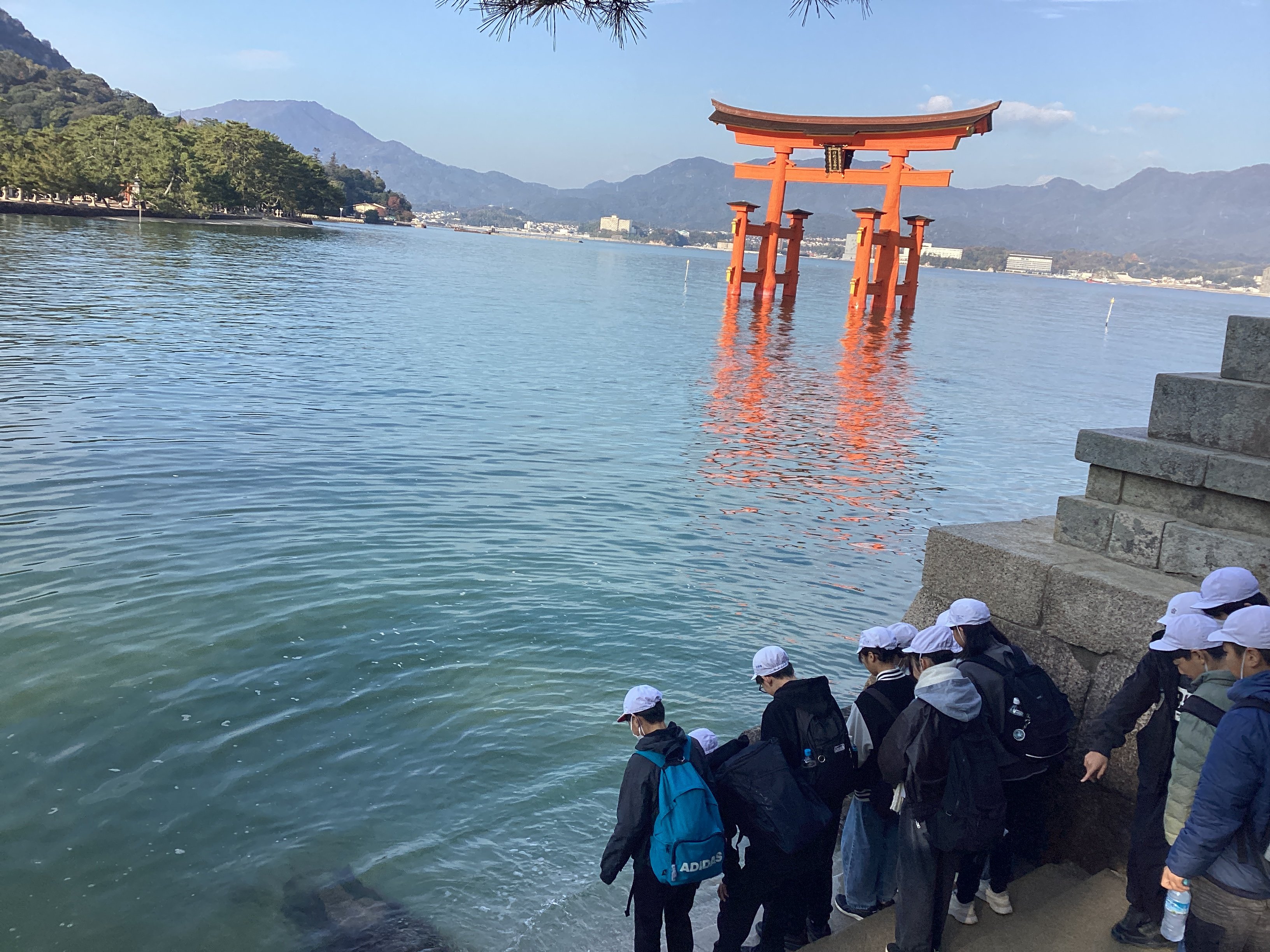 修学旅行2日目の様子です。子ども達は、元気に起床し、朝ごはんもしっかり食べ、その後協力して部屋の片付けをし、宿舎を後にしました。厳島神社、水族館見学を終えた後、買い物タイムを楽しみました。2日目の様子を何通かに分けて写真でお伝えします。