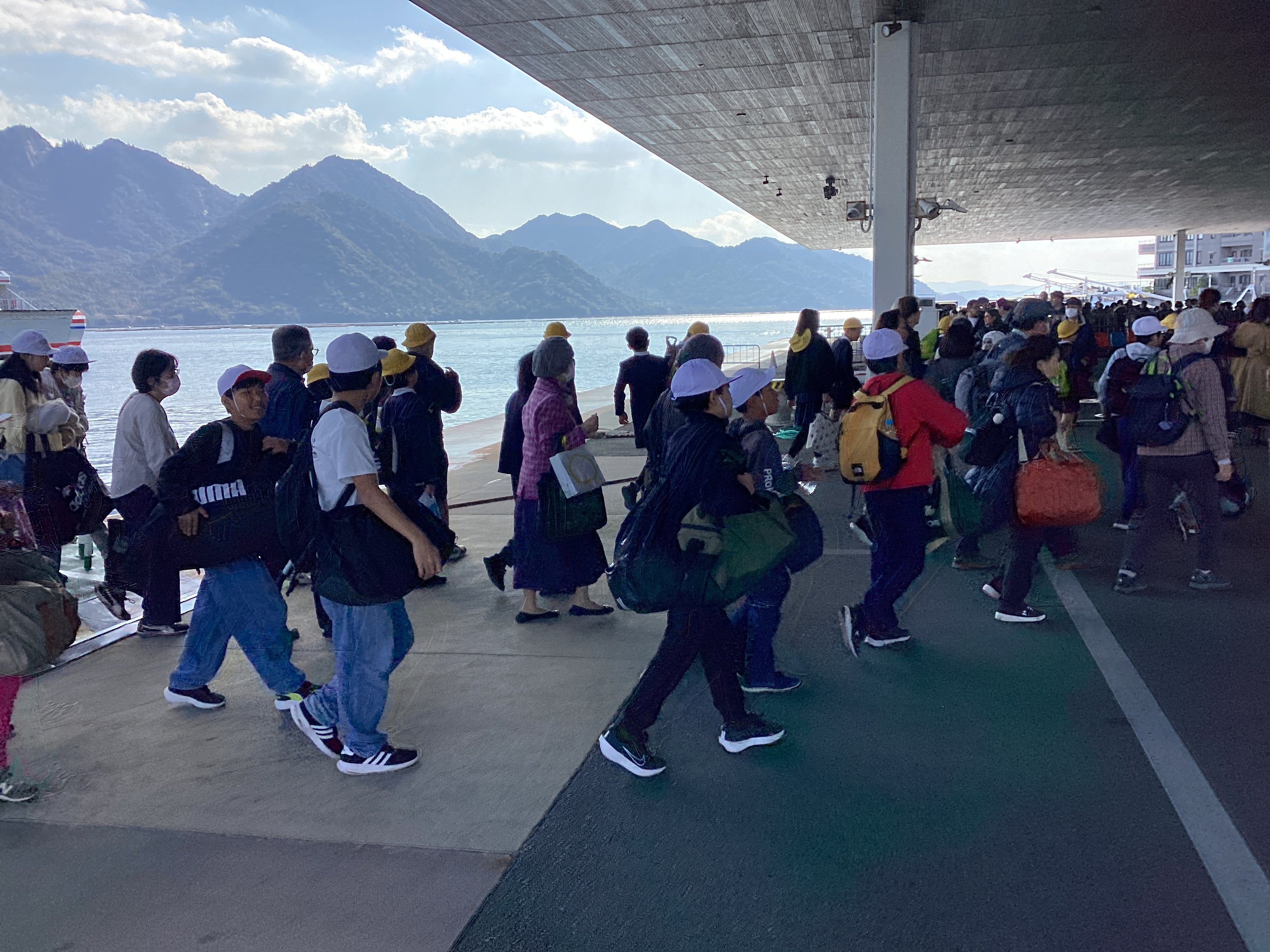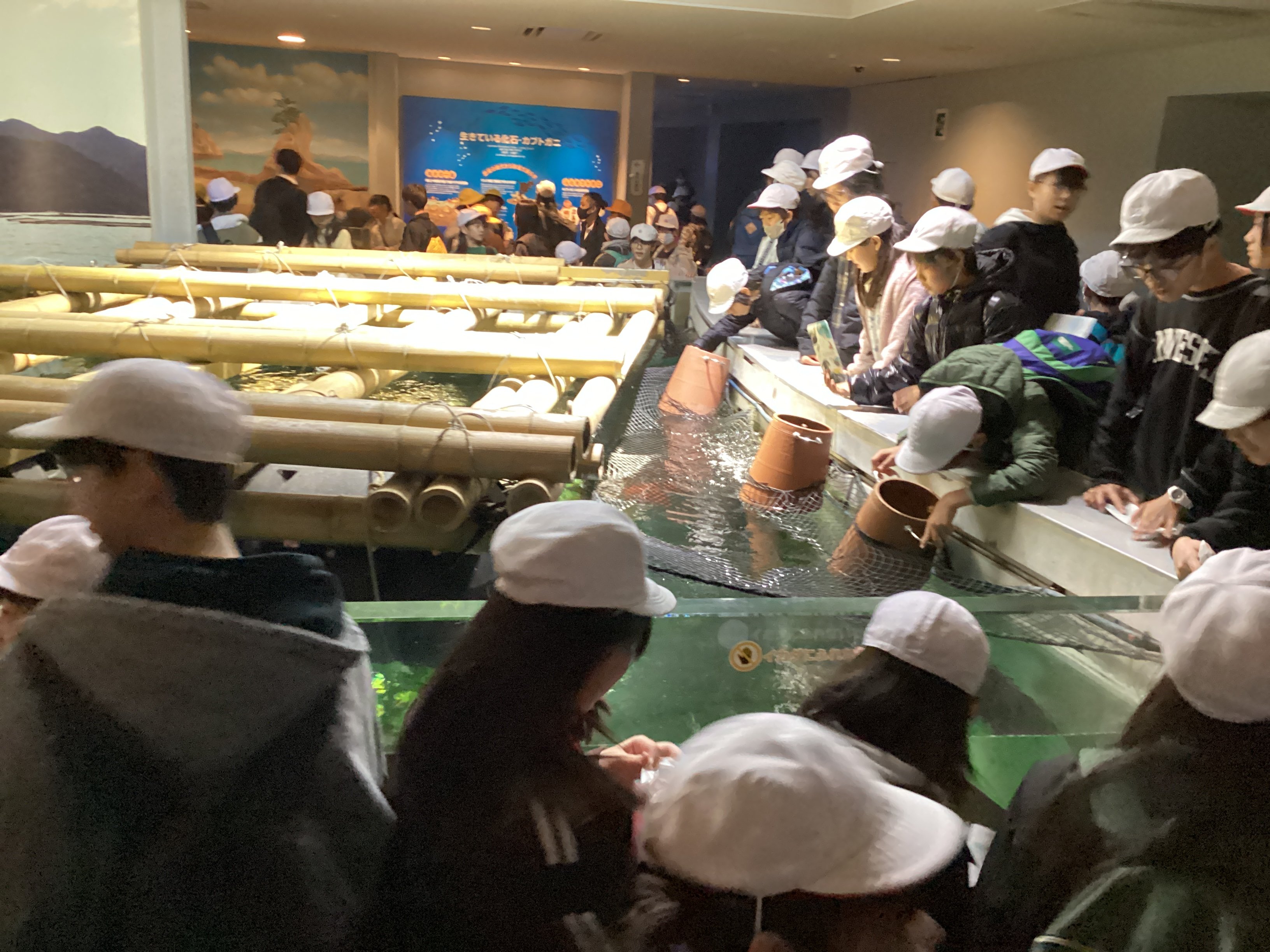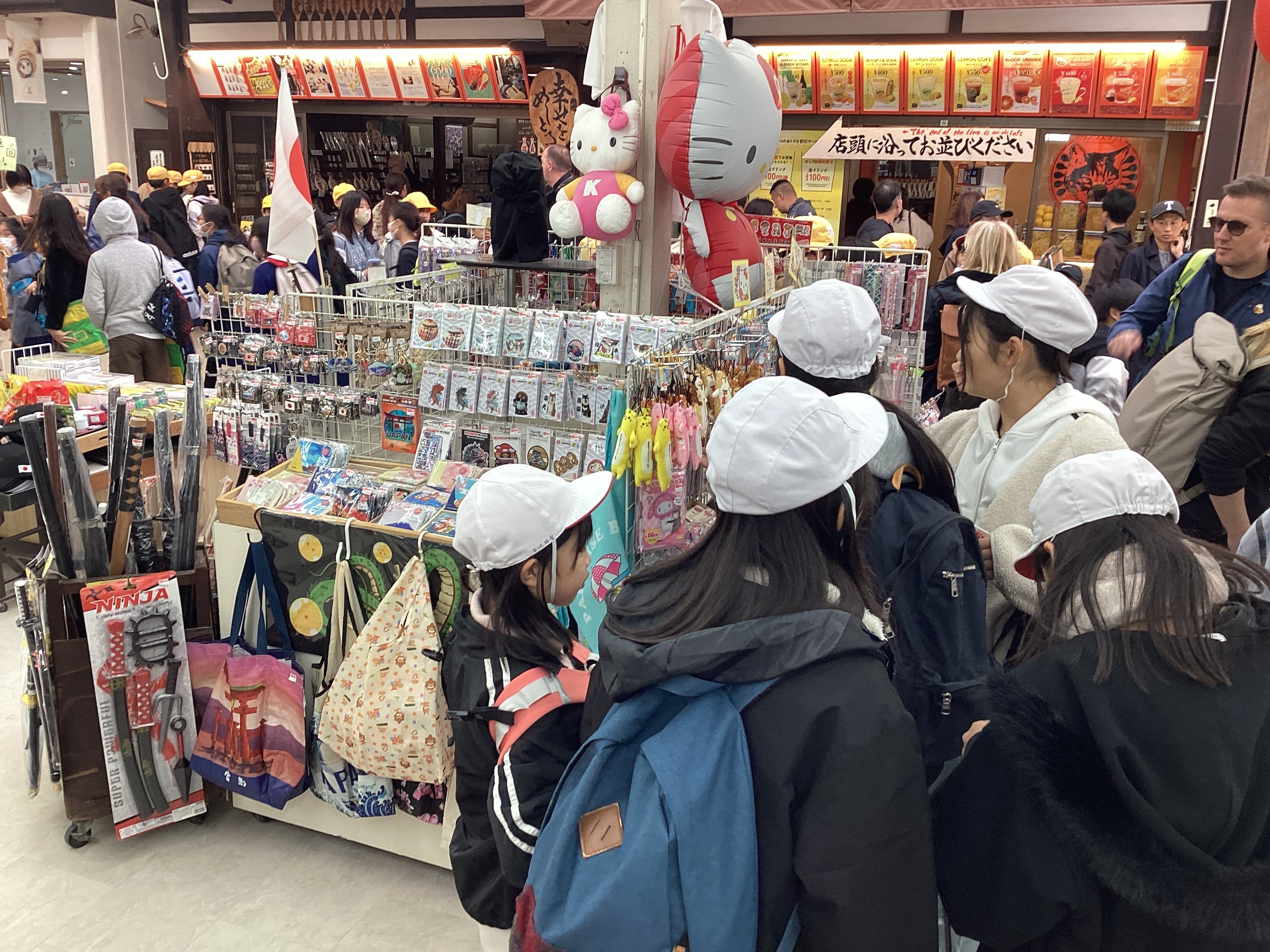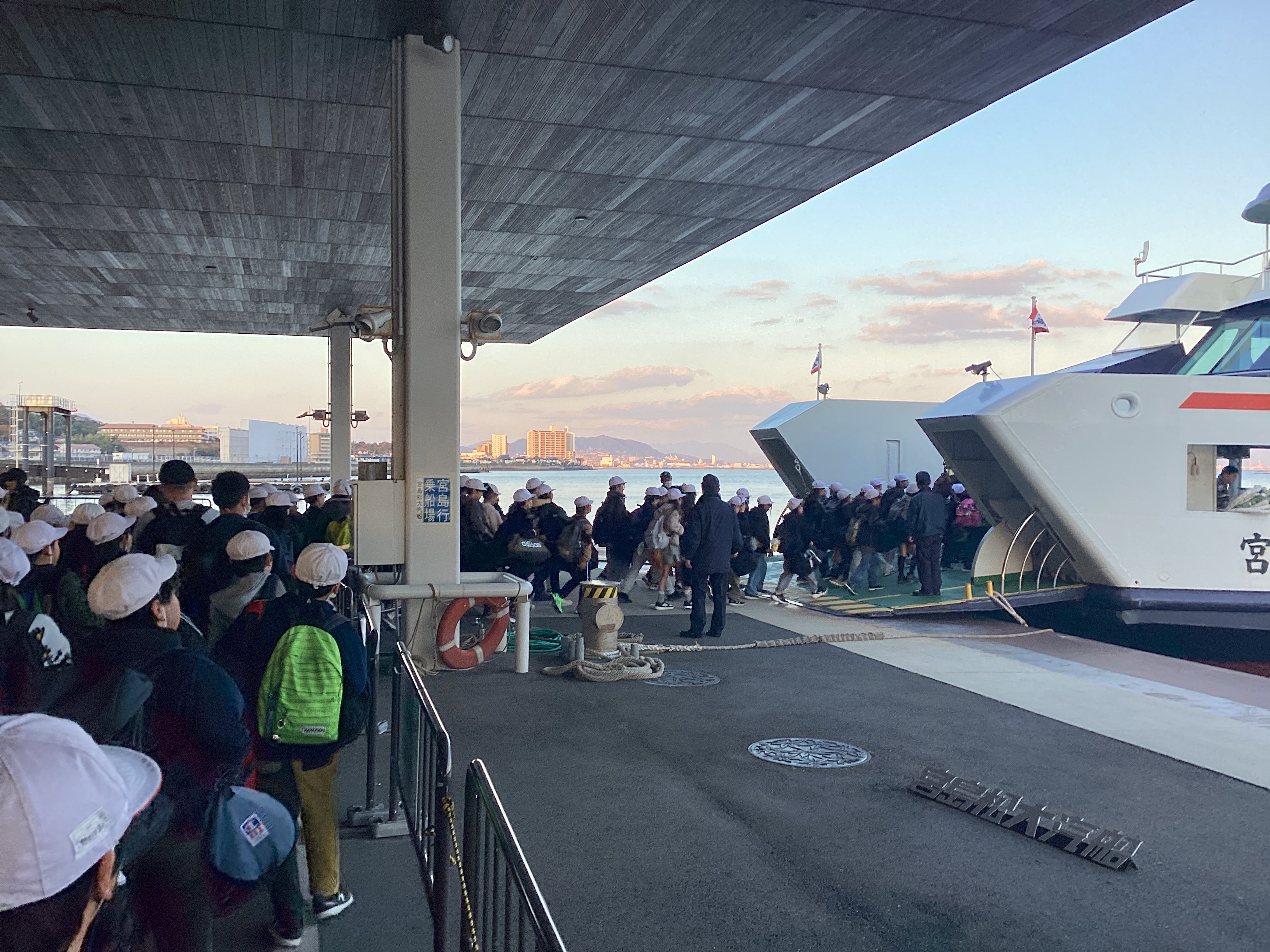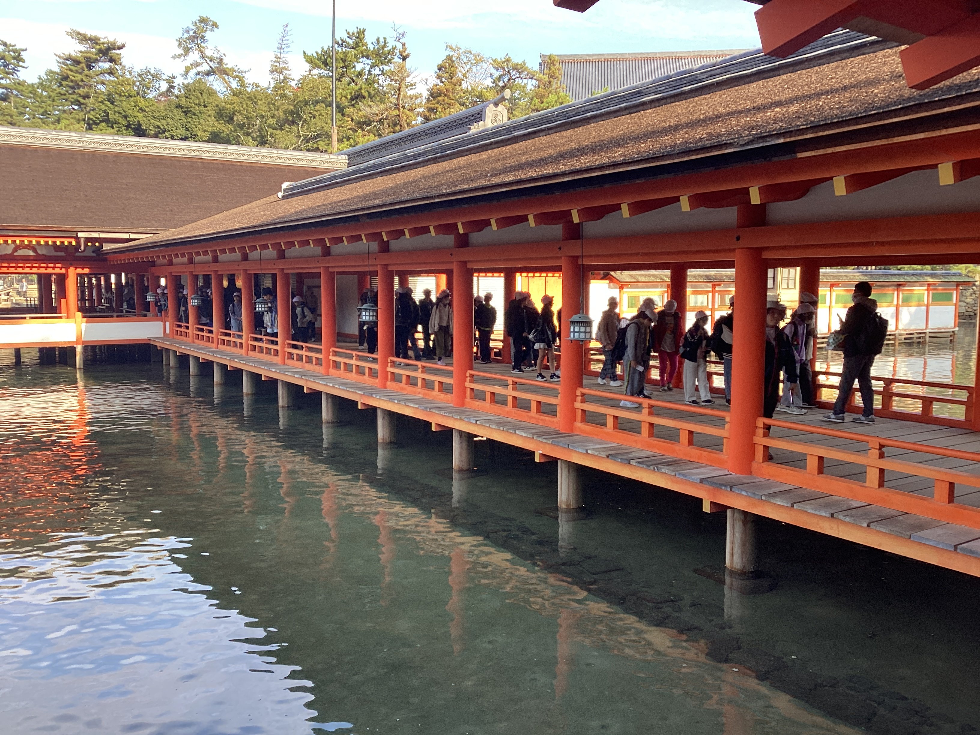 修学旅行2日目の様子です。子ども達は、元気に起床し、朝ごはんもしっかり食べ、その後協力して部屋の片付けをし、宿舎を後にしました。厳島神社、水族館見学を終えた後、買い物タイムを楽しみました。2日目の様子を何通かに分けて写真でお伝えします。