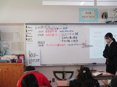 どの学年でも担任以外の先生から教えてもらう時間を設けていることは以前お伝えしました。今日は、6年生で社会と道徳で担任とは違う先生に教えてもらっている様子を紹介します。どちらの教室でも、少し子ども達はいつもと違う面持ちで、授業に臨み、先生から発問のあったことに反応をしていました。写真は、社会の授業だけしか取れていませんが、良い意味での緊張感がある様子が伺えました。