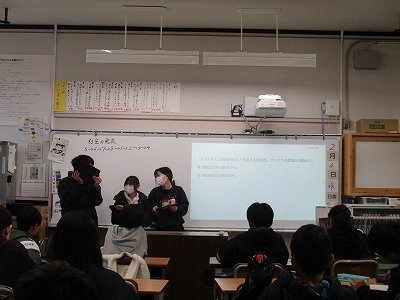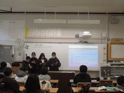 6年社会では、外国と日本とのつながりについて、多面的に調べる学習をしています。そのつながりによる影響はどのようなものがあるか、今後どのような関係で行くとよいのかなどを考え、班でまとめて発表する活動に臨みました。同じテーマで調べていても、資料やデータの出し方がそれぞれの班で違ったり、つながりについての考察も同じ班もあれば全く違う班もあったりして、それぞれ興味深かったです。