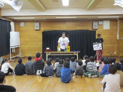 2月7日、PTA子ども講座「子どもマジック講座」が開催されました。40名以上の児童が参加し、Dr.MJによるマジックを楽しんだ後、マジックに使う小道具づくりを行いました。Dr.MJのマジックは、はじめ種が分かるような動きをしますが、最後に予想を裏切る結果になり、どうしてそうなるんだろうと驚かされるものばかりでした。小道具づくりは、保護者やPTAの方に手伝ってもらい、みんな一生懸命工作に取り組んでいました。