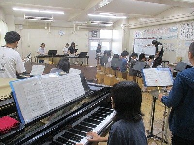 今月末にある音楽会に向け、合奏曲のパート決めが終わり、いよいよ合奏の練習が本格化してきました。パートリーダーを決め、楽器群ごとに協力しながら、練習に子ども達は励んでいました。音楽の先生から専門的なアドバイスをもらい、演奏の質を高めようとしていました。(写真は6年生の様子です)
