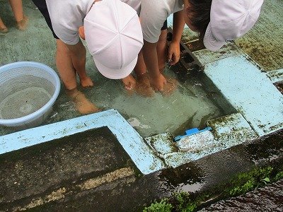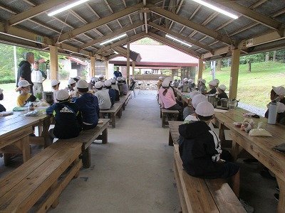 林間学習2日目です。朝早く起き、荷物を片づけ、活動に入りました。ニジマスつかみ体験では、魚のつかみ取りにチャレンジし、捕まえた魚を塩焼きにして食べることもしました。その後、広場で思いっきり体を動かして遊びました。あっという間の二日間、帰校式後、子ども達に感想を尋ねるととても楽しかったとの声が多かったです。