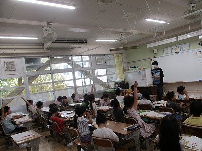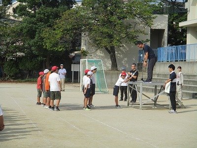 10月1日、久しぶりに運動場で全校集会を行いました。朝晩は涼しくなってきたものの日差しが強いとまだまだ暑さも感じます。「自ら考え、自ら学ぼう」という私からの話の後、10月から来られた先生の紹介をしました。その後、課外サッカー部と歯みがきがよくできている人の表彰を行いました。