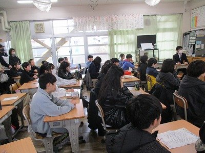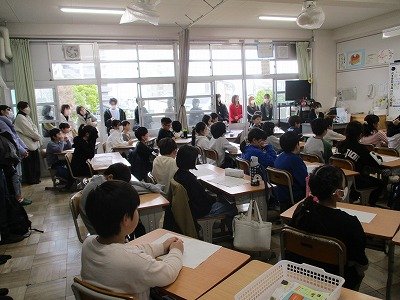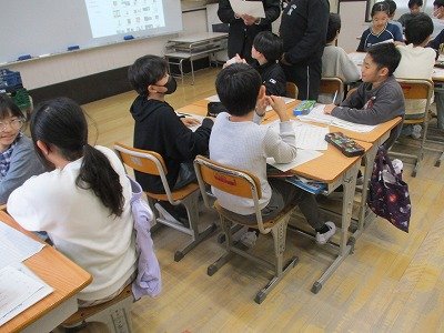 この授業は、校内の研究授業も兼ねていたので、先生たちで授業を見た後、授業研究会を行いました。
