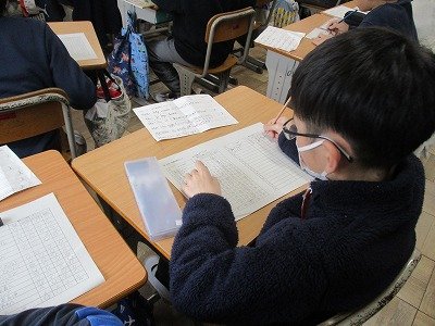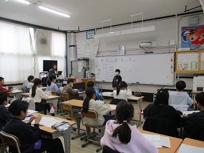 2月26日、今年度最後の参観懇談を高学年が行いました。それぞれの学年で、子ども達の成長した様子を来てくれた保護者の方に見せていました。4年生は、自分の将来の夢やこれから頑張りたいことをスピーチしていました。5年生は、自分にとってヒーローだと思う人を理由も添えて、英語でスピーチしていました。6年生は、これまで育ててくれたお家の人に感謝の手紙を書き、それを読み上げていました。どの学年も、子ども達の成長を感じていただけたのではないでしょうか。