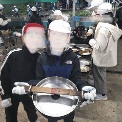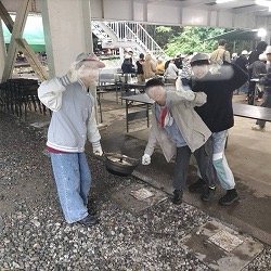 雨の中ですが、飯盒炊さん場は屋根のある半地下になっているので、無事に行うことができました。