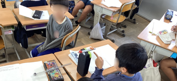 その後、黒板に書かれた考え方を、ペアで話す時間でした。自分の考えだけでなく、お友達の考え方を理解するための手立てをとっていました。黒板を指しながら一生懸命にお友達に伝えようする一年生の姿がよく見られました!