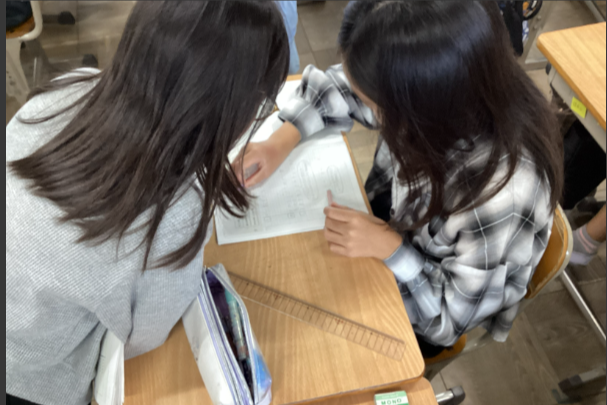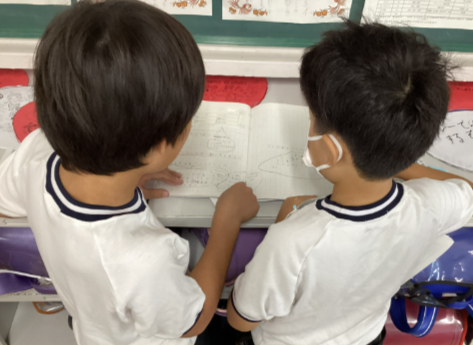 考えたことをそれぞれが交流するときには、ペアだけでなく、ほかのお友達との交流もしていました。覗き込みながらお友達の考えを聞く姿もありました。