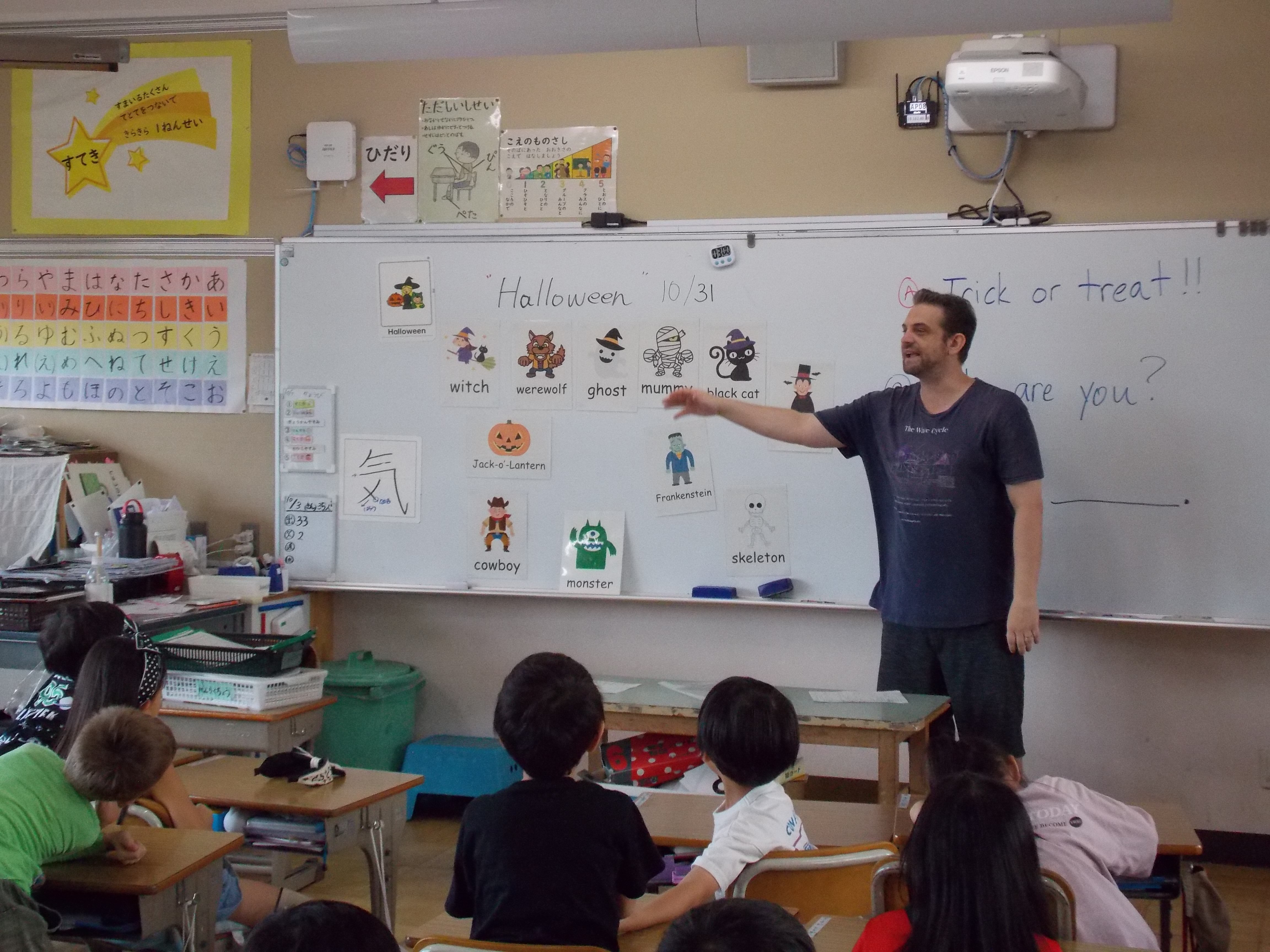 6年生では行きたい国の紹介。1年生はハロウィンについて