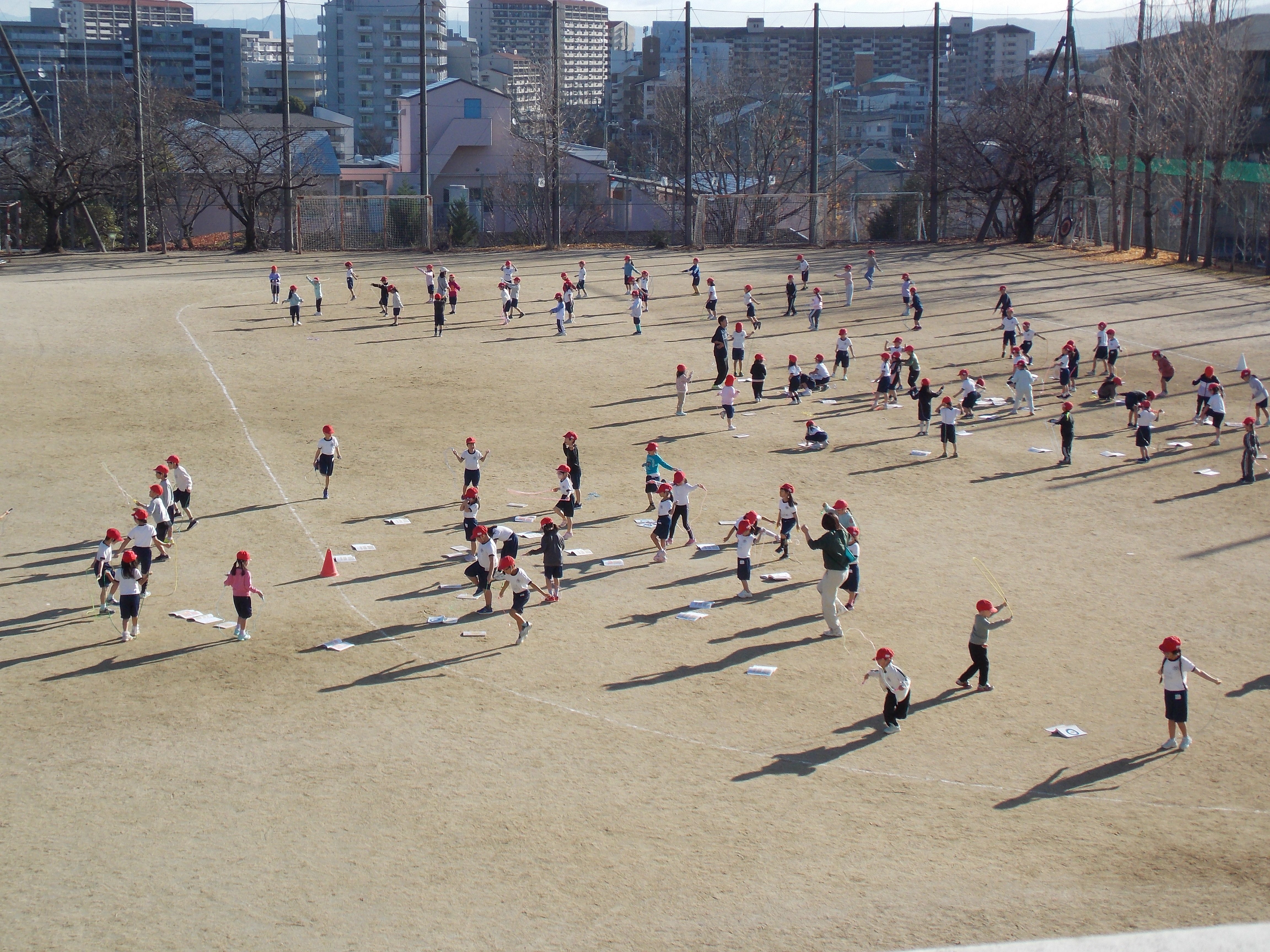 寒さにも負けず、学年全体でなわとび検定に取り組んでいました。