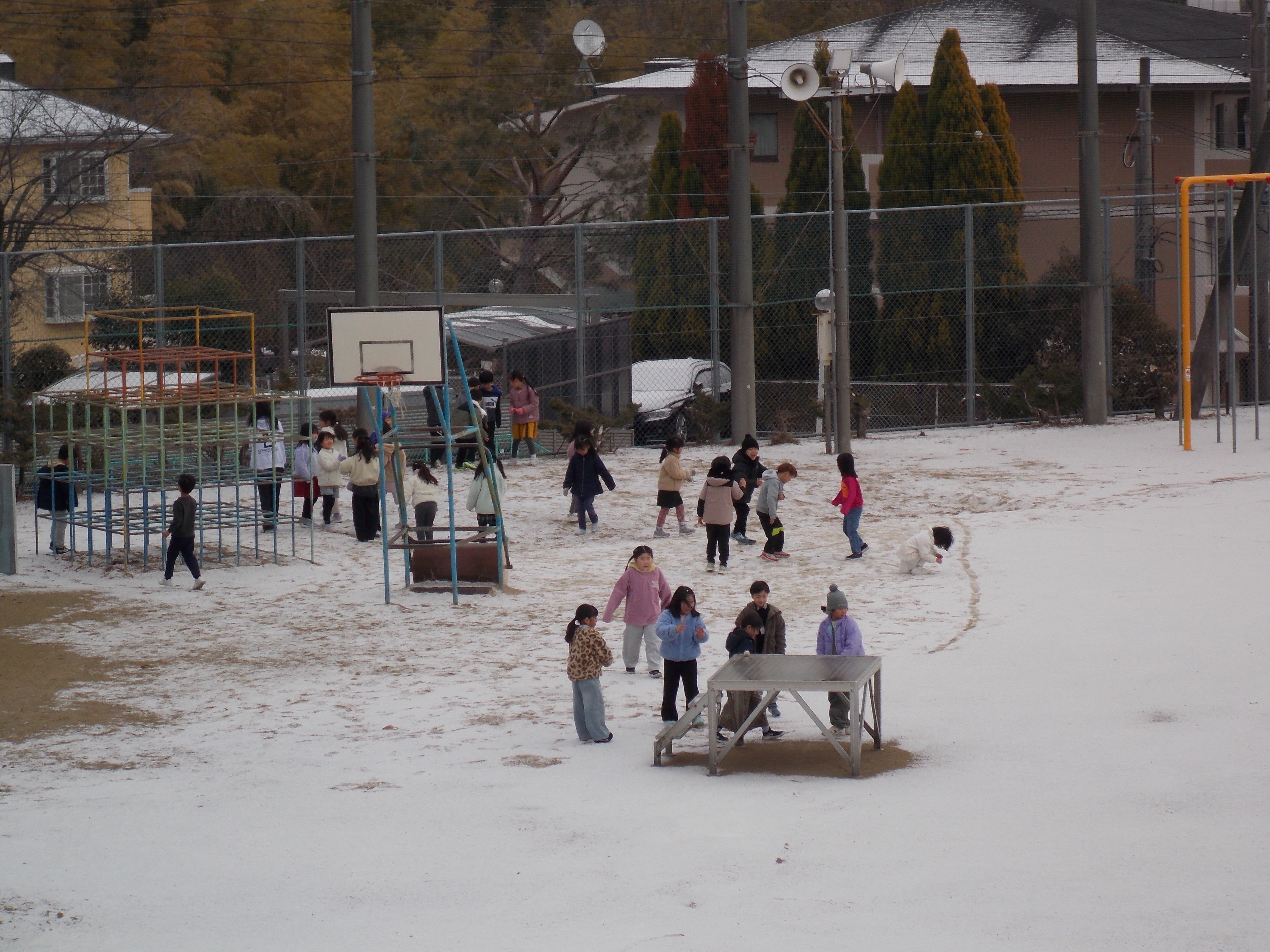 1年生たちが雪が解けてしまわないうちに、少しだけ