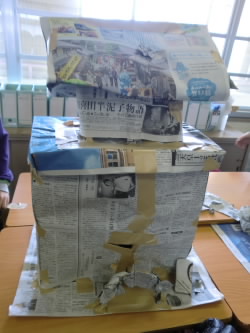 5年生最後の図画工作科の授業として、新聞を使った造形活動を行いました。班でけんかしながらも協力してどの班も立派な作品が完成しました。今までの図画工作と違って自由に作品を作れたことで、子どもたちも楽しめたようです。
