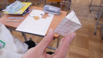 5年生の算数は三角柱の展開図をかいて、