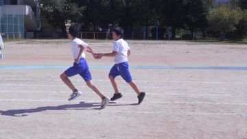休み時間にリレーの練習(バトンパス)をする子が出てきます。