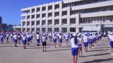 今日は赤白の応援団長が放送で全校児童に呼びかけていました。