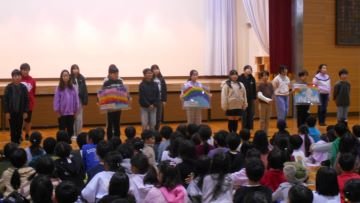 6年生からは平和宣言、歌の発表がありました。