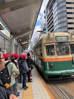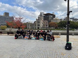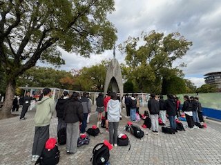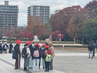 6年生が平和記念公園の原爆の子の像に捧げてきます。