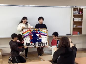 集会の最後は、6年生から、20〜21日に全校児童が折った折り鶴を使って作ったオブジェを持って広島へ修学旅行に行って来ますと、力強い言葉がありました。