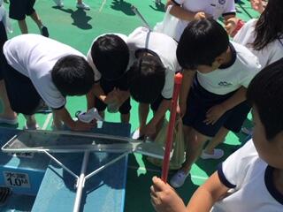 3年生がプールの清掃前にヤゴを救出してくれました。