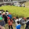 中尾さんの田んぼをお借りして、5年生が春に田植えをした苗が立派に育ち、稲穂が黄金に輝いています。