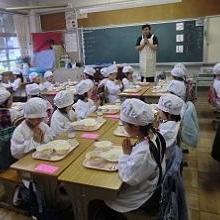 4月17日(月) 1年生の給食が始まりました。今日は、子どもたちに人気のカレーです。初めての給食を楽しみに待っていました。初めてにしては、よく話を聞いて上手に出来ましたよ! みんなで協力して、楽しく食べるためにはルールがあります。当番のやり方も覚えていきましょうね。