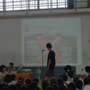 6月20日(火) 児童集会で、保健委員会からは、歯についてクイズ形式で楽しく話をしてくれました。給食委員会からは、写真を使って片づけ方など分かりやすく説明してくれました。