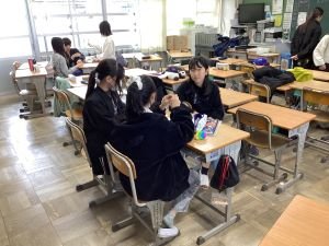 たいよう学級で合科がありました。クリスマスリースをつくりました。毛糸を巻いて巻いて外枠をつくり、飾りをつけてオリジナルのリースをつくりました。集中して取り組む姿、いろどりを工夫する姿、協力する姿など、成長した様子がうかがえました。完成を喜び合うすてきな時間となりました♪