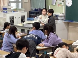 4年生がえいごキッズの取組をしました。いつもの外国語の時間ではなく、新たな先生も加わっての活動になりました。子どもたちはそれぞれで個性的なサンタクロースを描き、お互いに紹介しあいました。温かな空間のなかで、にぎやかにコミュニケーションを楽しむ子どもたちでした。