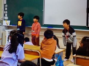 今日は2学期が終わる直前の1日ということで、各教室では「お楽しみ会」が行われていました。仮装、手品、クイズなど、わきあいあいとした雰囲気で、とてもいい顔をしていました!