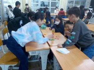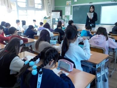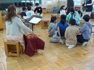 4年生がお琴の体験をしました。お招きしたお琴の先生の生演奏にうっとりした後、「さくらさくら」の演奏に挑戦しました。上品なお琴の音色が音楽室に響き、「うまい!」「きれい!」の感嘆の声が各グループから聞こえてきました。この出会い・体験をきっかけに、お琴に興味をもってもらえると嬉しいです。