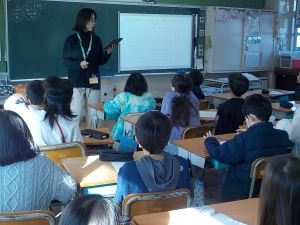 5年生が、環境教育家として長年ビオトープづくりに携わってこられたゲストティーチャーをお招きしてお話をうかがいました。地球の現在の姿、どのように限られた資源を守っていくのか、たくさんのスライドをとおして、考え学びました。未来を担う子どもたちにとって、環境について考える好機となりました。