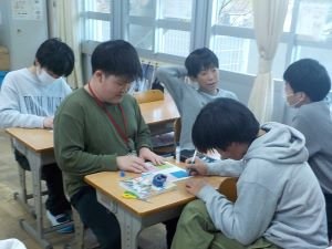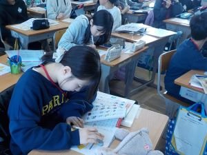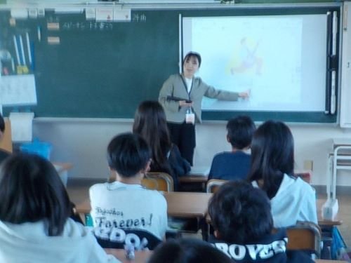 5年生の英語の時間です。今日は、自分のあこがれの人(推し)を紹介するスピーチを考えました。アニメ・漫画のキャラクター、スポーツ選手、芸能人など、その人のすてきなところを英文にしていました。次の時間はいよいよ発表です。交流が楽しみです!